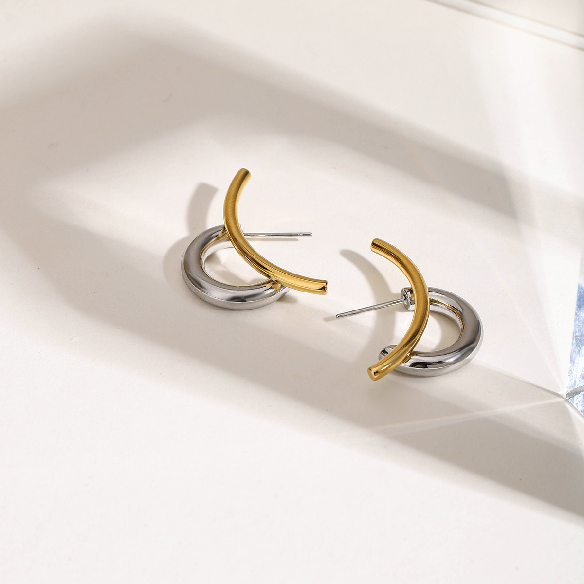 Stainless Steel Gold And Silver Color Matching Simple Line Fashion Non-fading Earrings