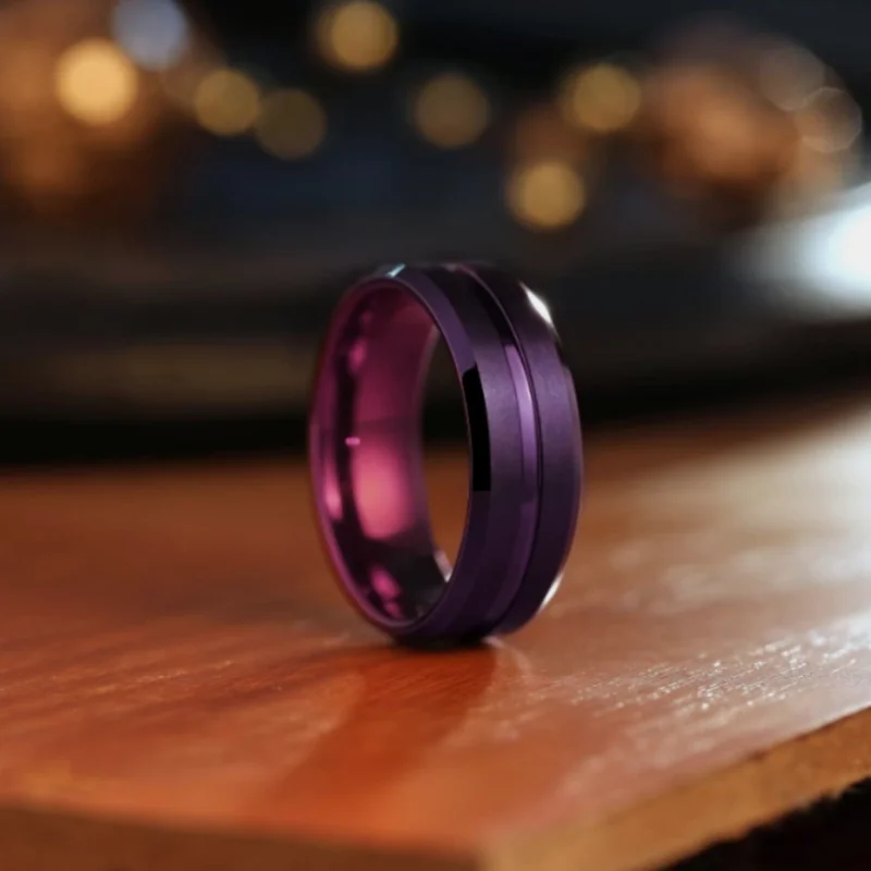 Introducing the 2025 Hot Selling Stainless Steel New Classic Fashion Purple Bevel Edge Slotted Ring for Men, the perfect combination of modern design and durability. Made from high-quality stainless steel, this ring is built to last and offers a stylish, timeless appeal. With its bevel edge and purple slotted design, it adds a unique touch to any man's collection. Whether you’re purchasing it for yourself or as a thoughtful gift, this fashion ring is sure to impress.