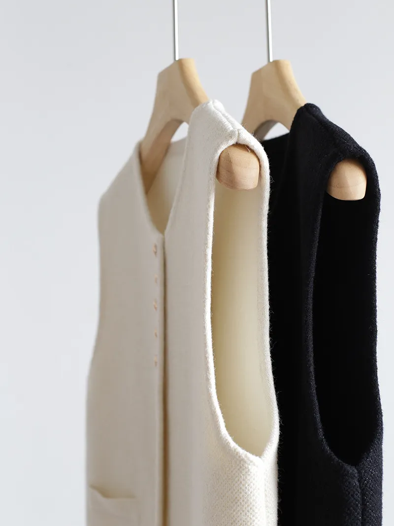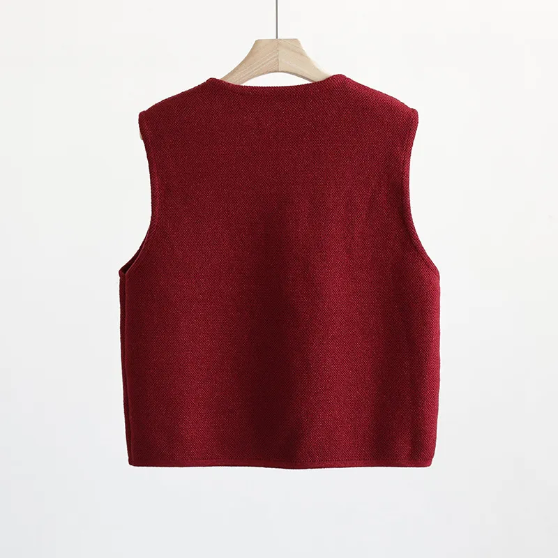 Static Luxury Old Money Style Round Neck Golden Bean Buckle Knitted Vest
