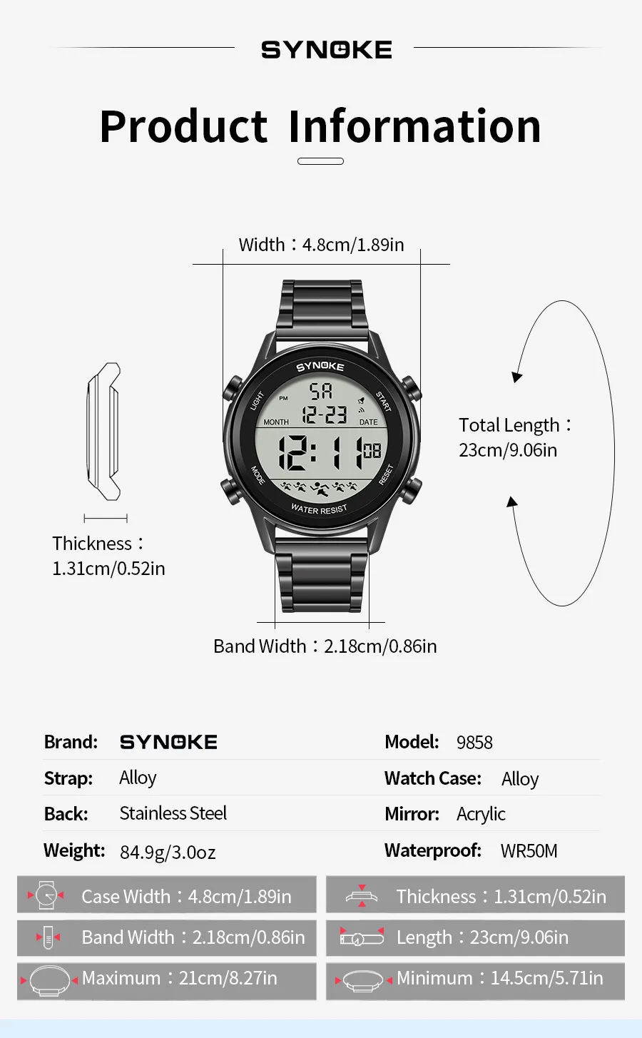 The metal construction also offers a sleek and modern look, making the watch appropriate for both sports and casual wear. Whether you're in the gym, at the office, or out on the town, the steel belt ensures that the watch stays securely on your wrist and complements your overall style.