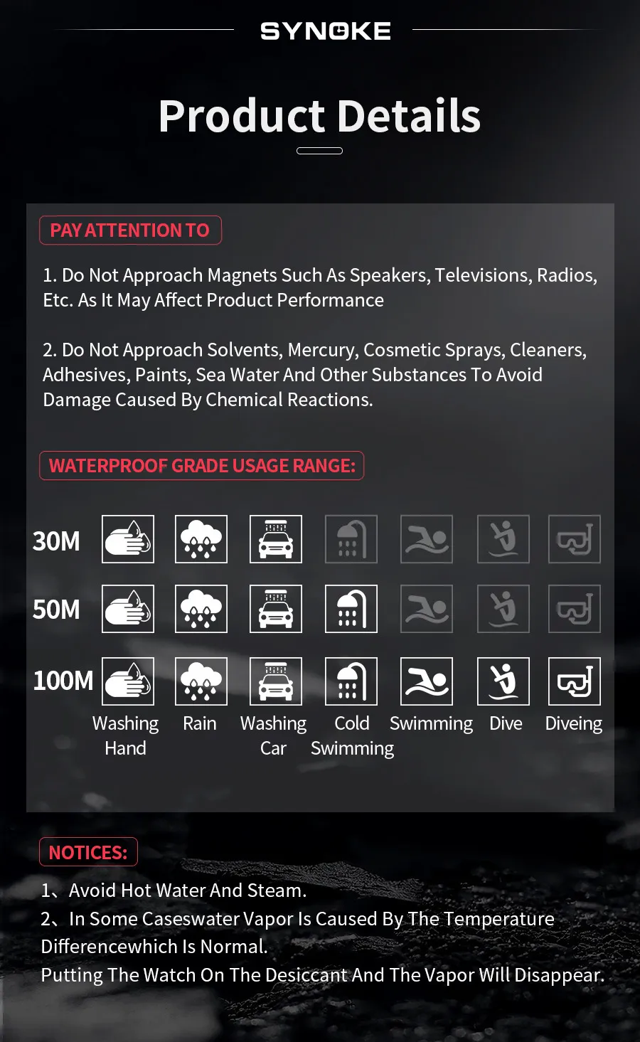 Waterproof performance: 50m