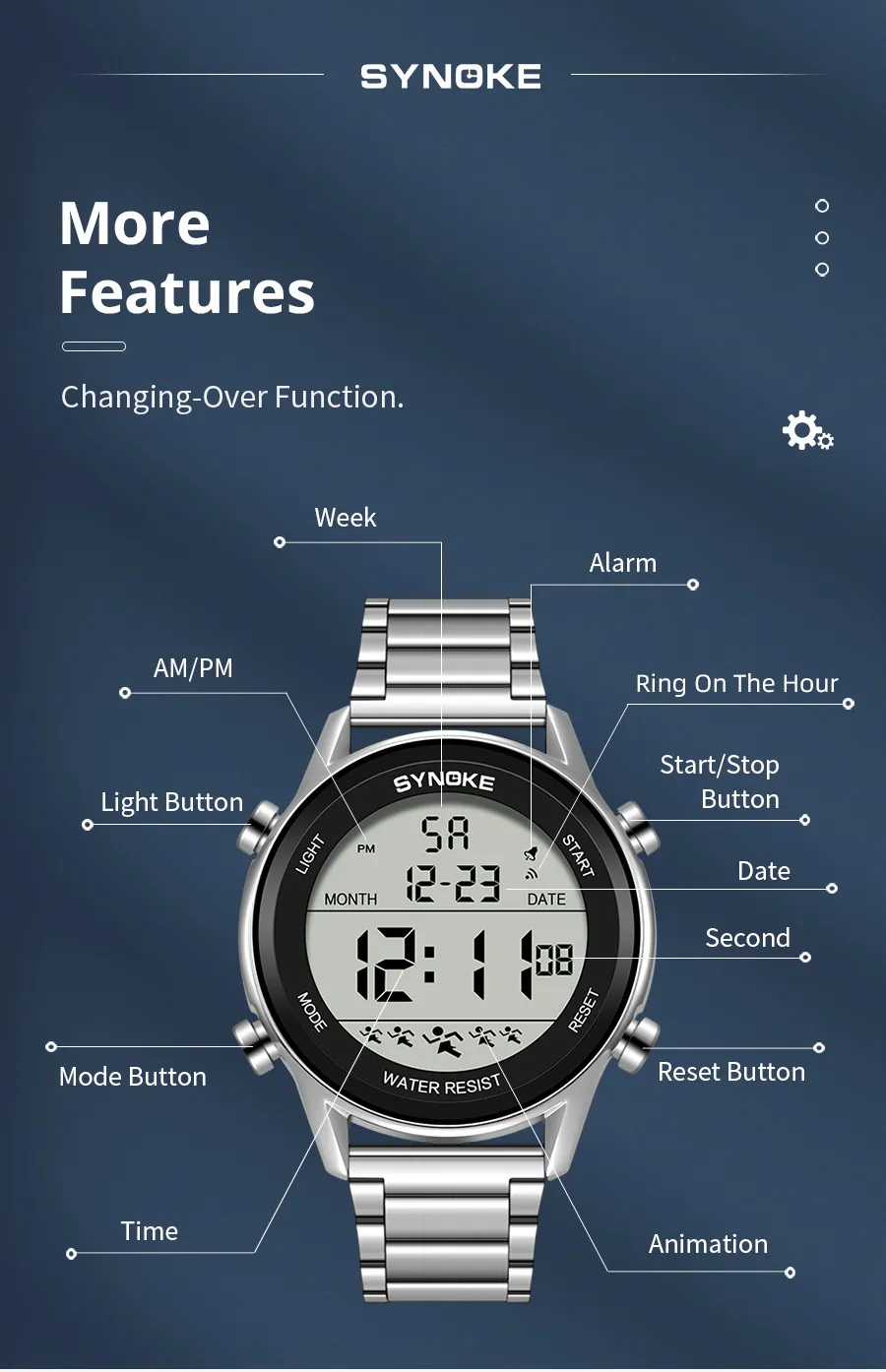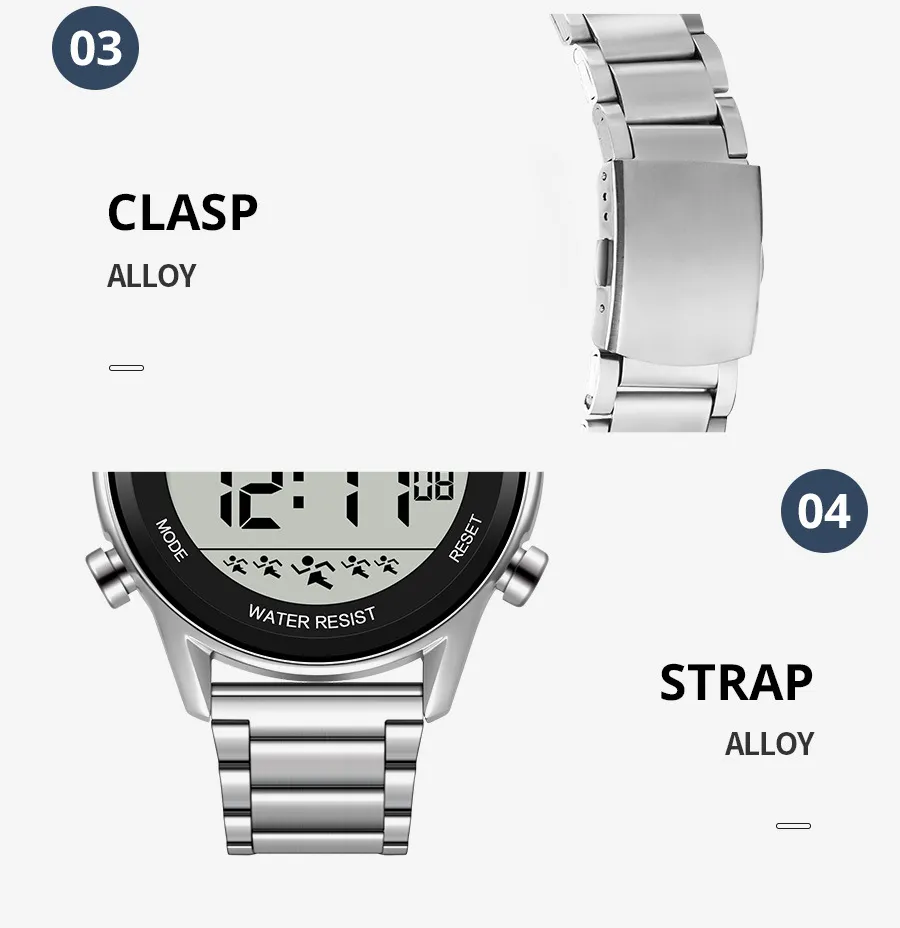 The Steel Belt Sports Electronic Watch is engineered to meet the demands of sports enthusiasts, offering a range of functions that make it suitable for various activities. Whether you're a runner, cyclist, swimmer, or hiker, this watch is packed with features to help you track your performance and stay on top of your fitness goals. Some of its key features include: