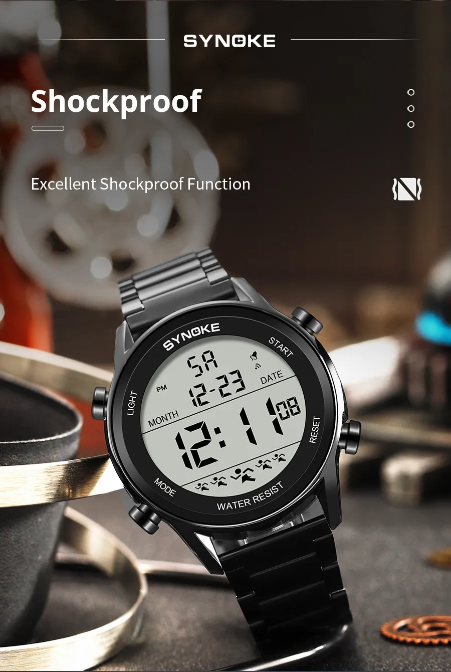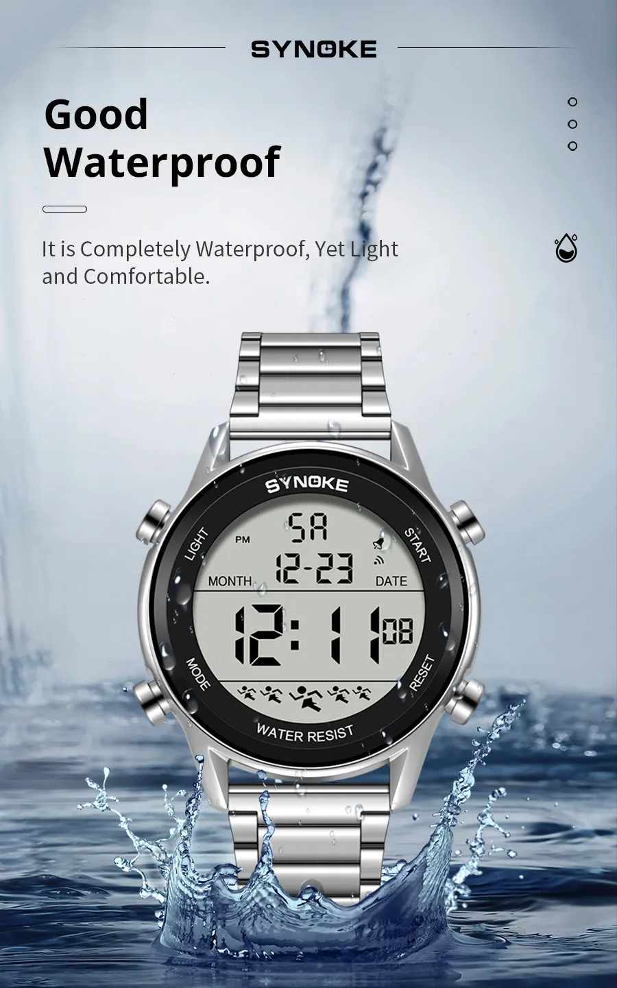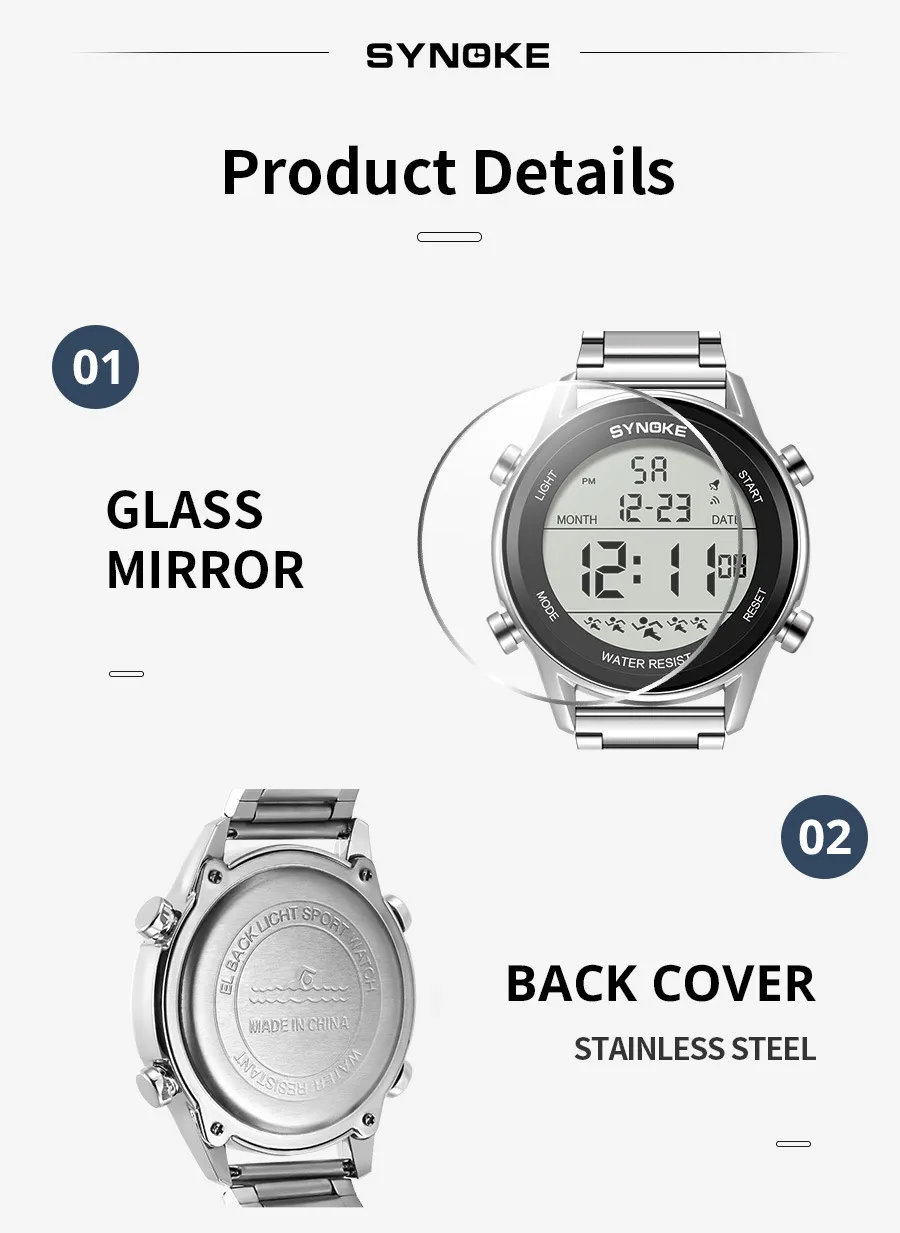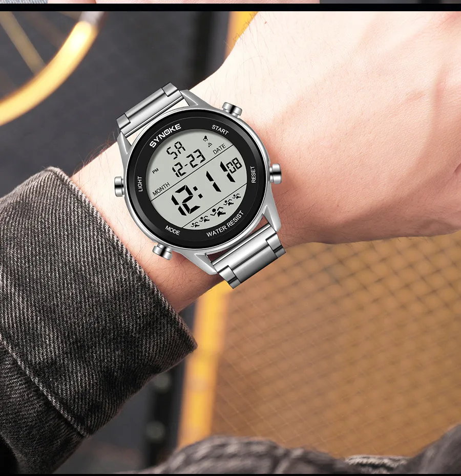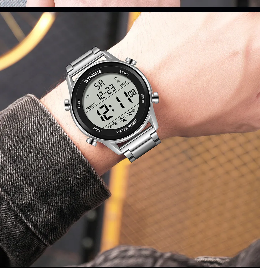 Designed with durability in mind, the Steel Belt Sports Electronic Watch is waterproof up to a certain depth, making it perfect for swimming, showering, or any outdoor activity where water exposure is inevitable. Whether you're out for a run in the rain or swimming in a pool, this watch will keep on ticking without a hitch.