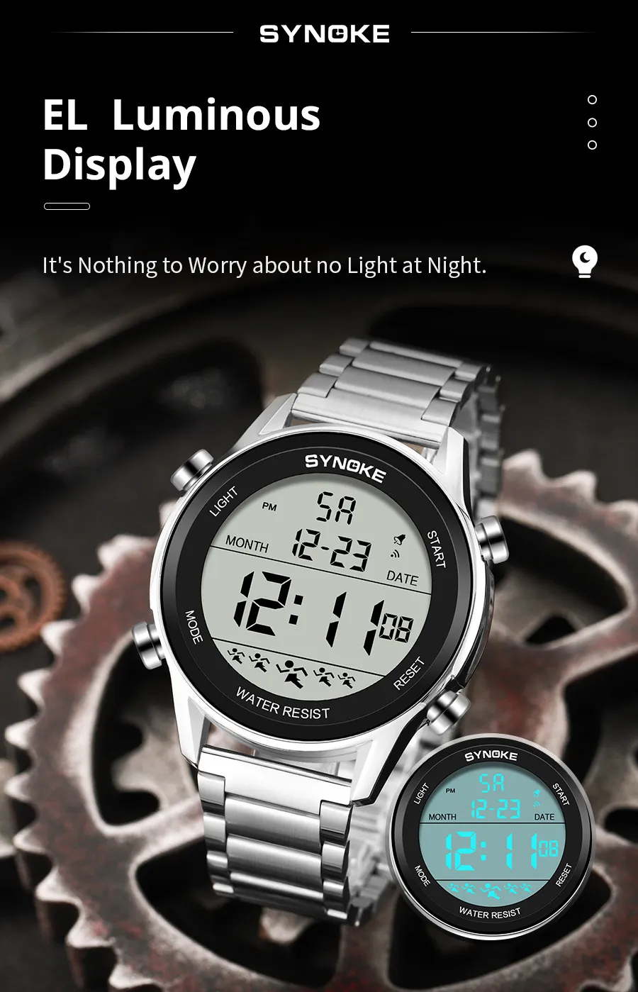 One of the standout features of the Steel Belt Sports Electronic Watch is its large luminous screen, which allows for easy reading in low light conditions. The luminous display ensures that you can check the time and other functions even in the dark, making it perfect for late-night workouts or outdoor activities after sunset.