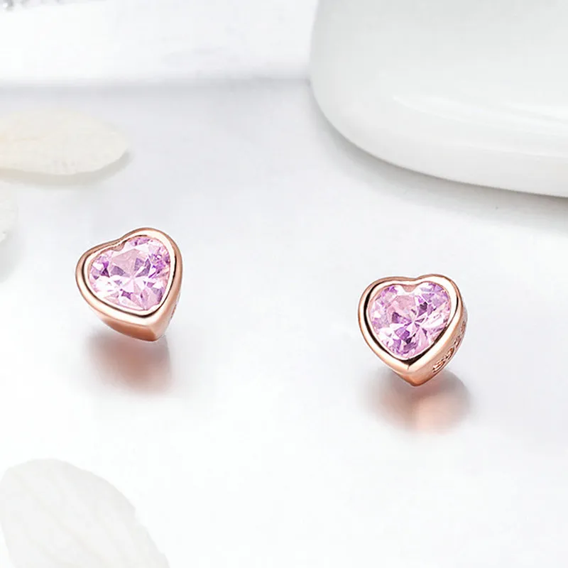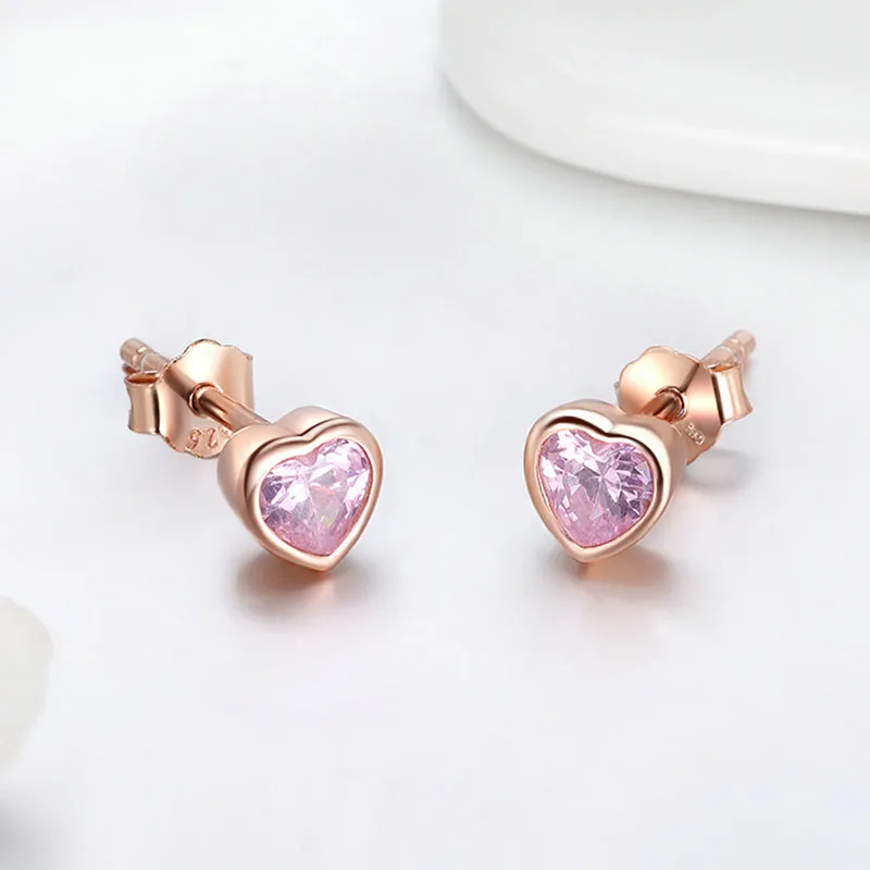 Sterling Silver Bright Heart-shaped Zirconium Diamond Cute Earrings