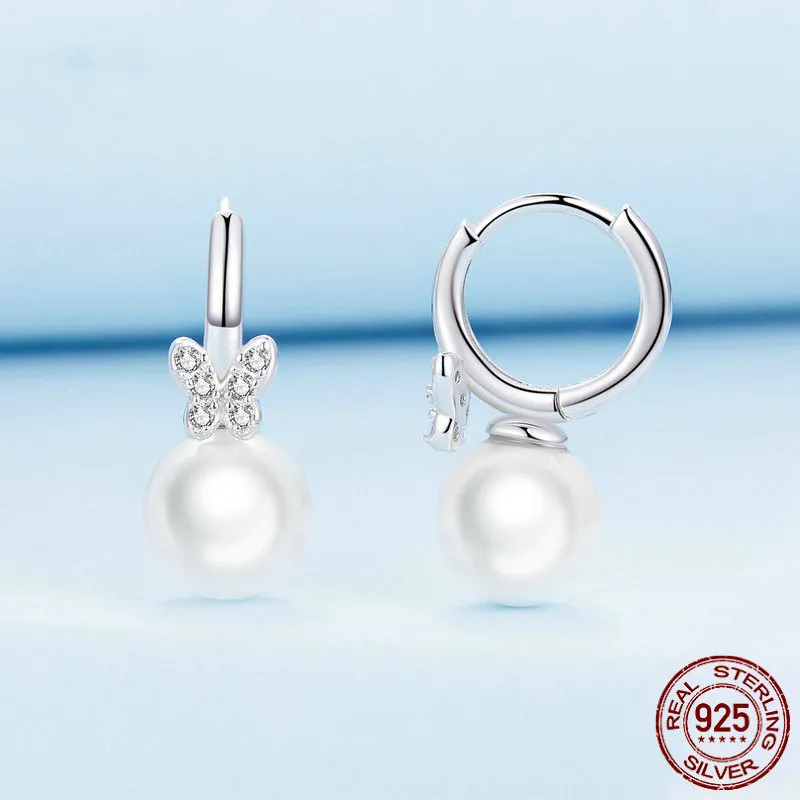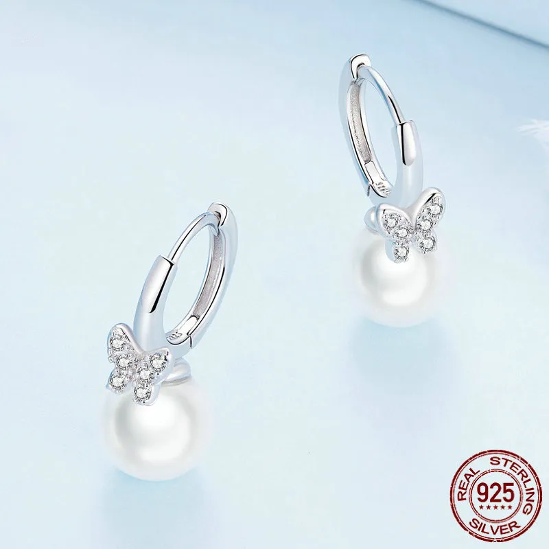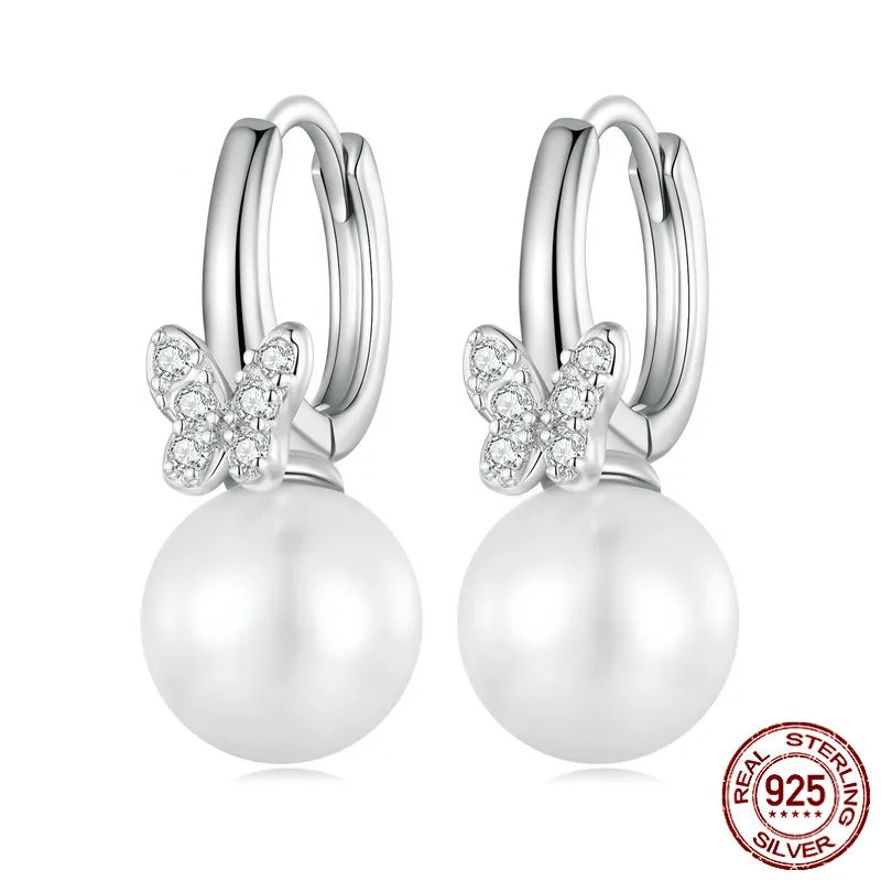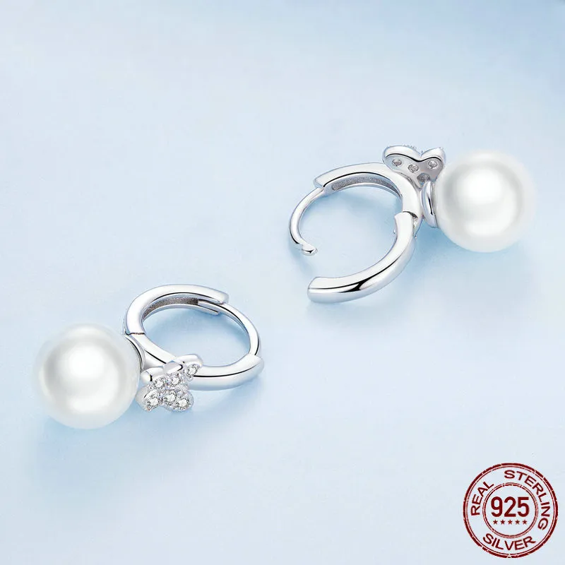 Sterling Silver Earrings Shell Pearls White Gold Plated Zircon