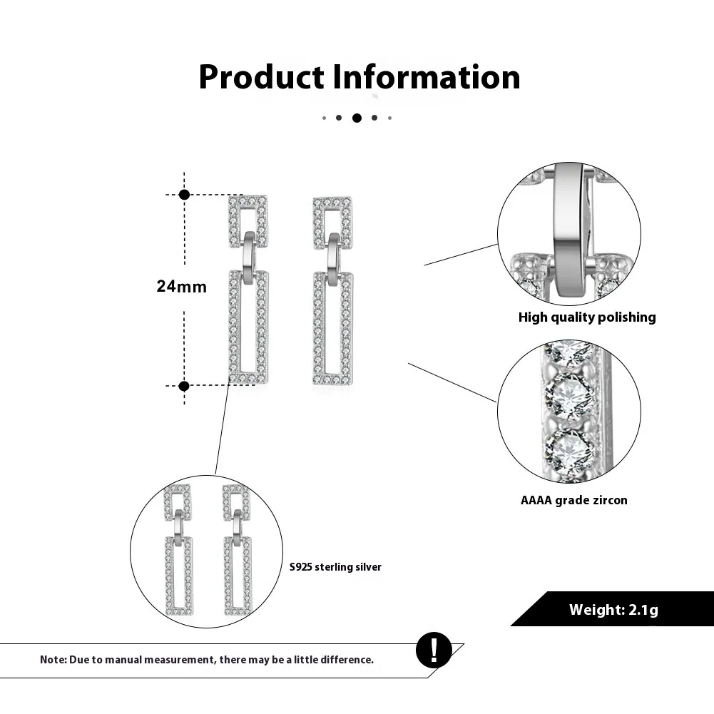 Sterling Silver Geometric Earrings Zircon All-match