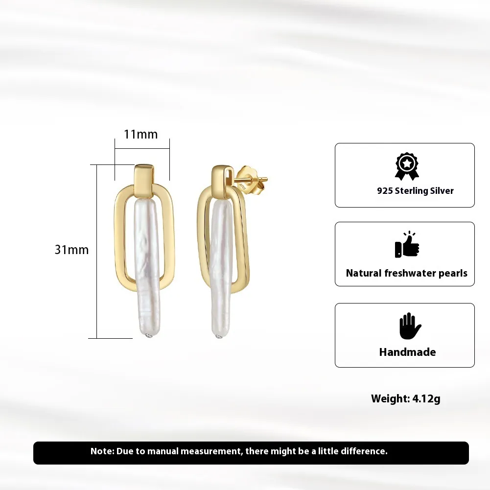 Sterling Silver Irregular Pearl Gold Earrings