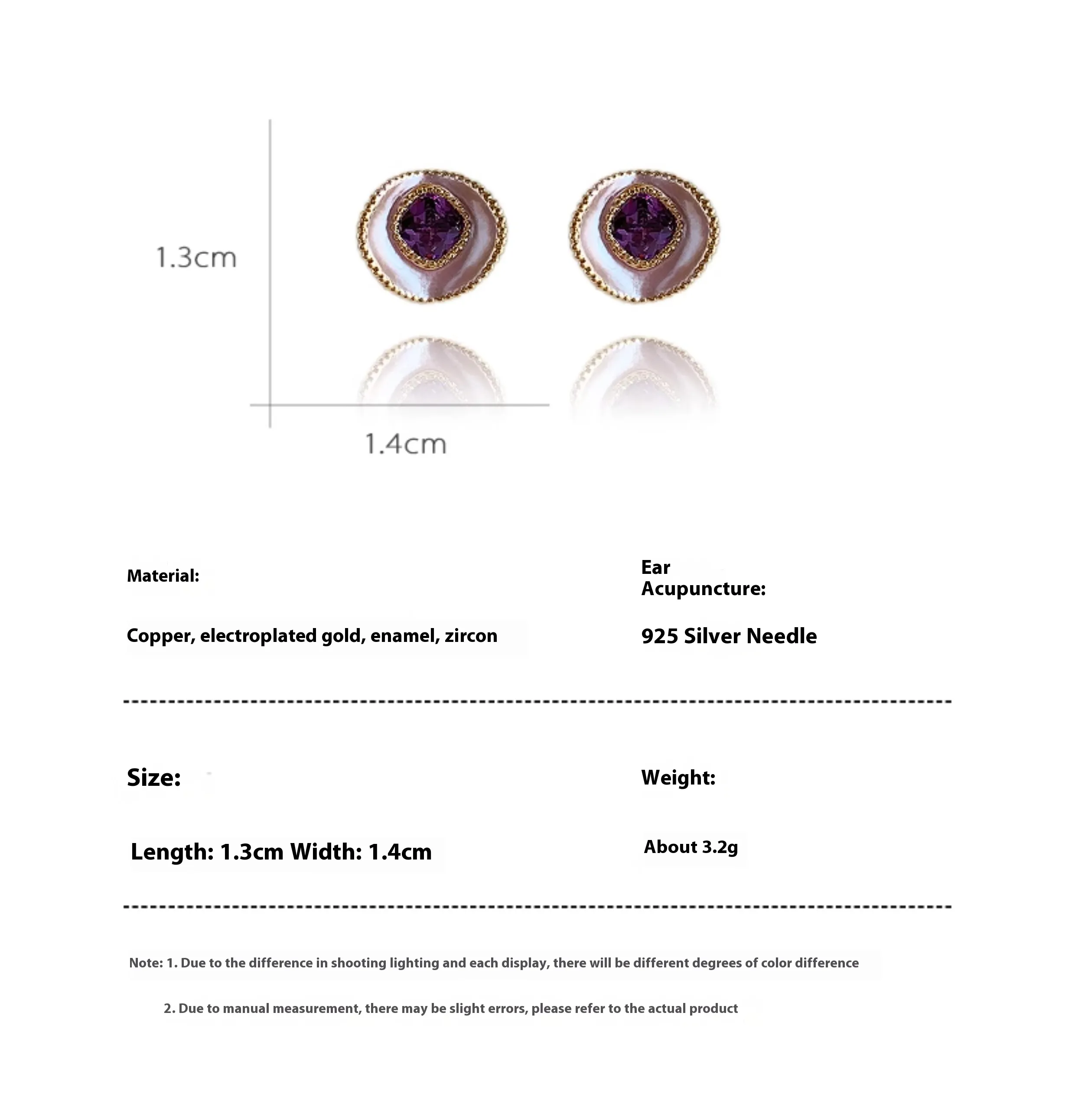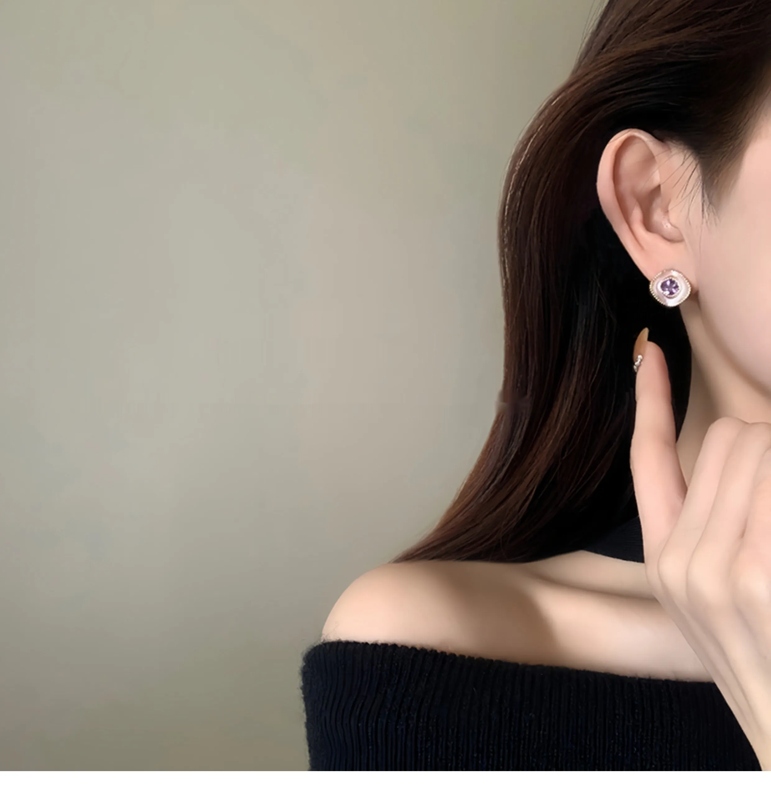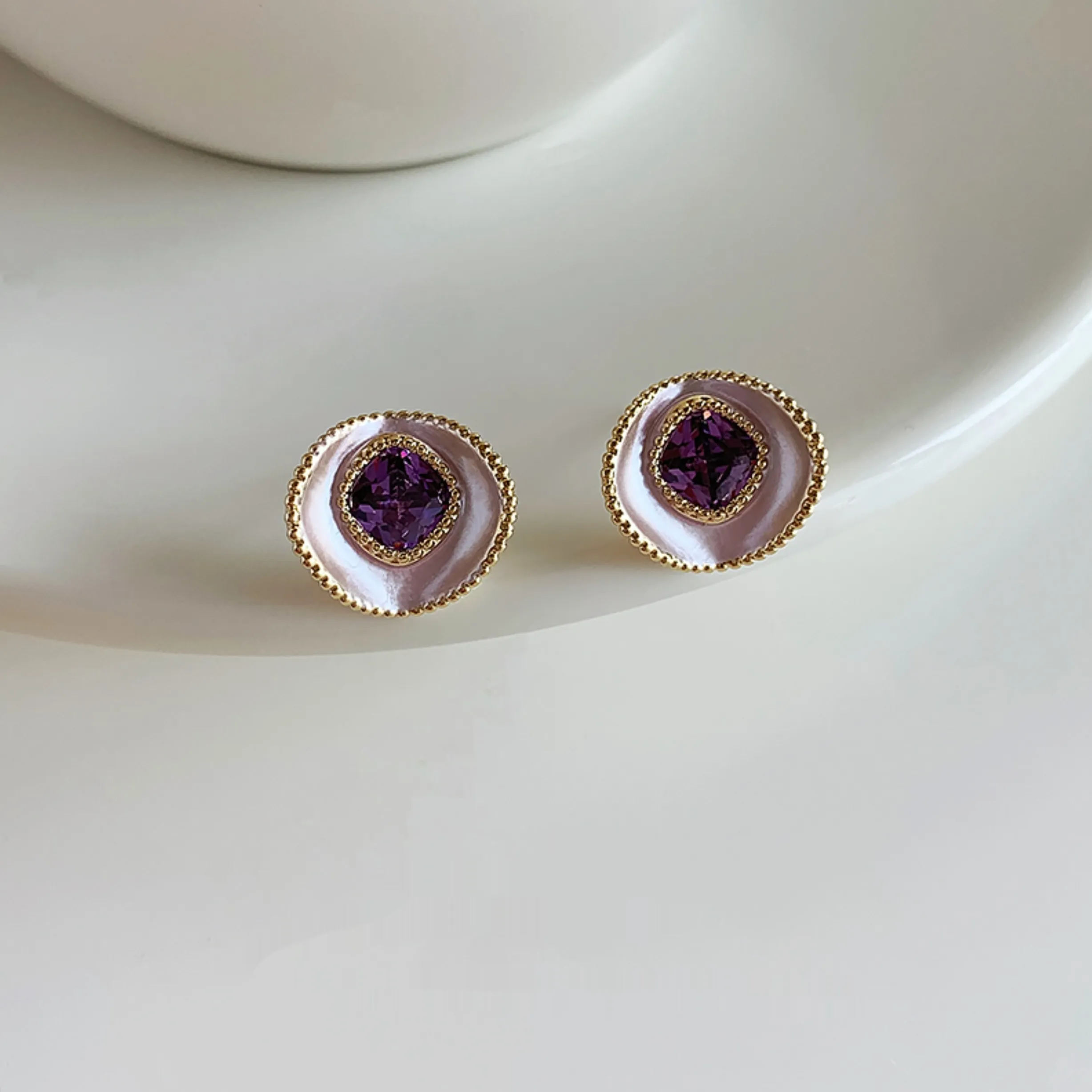 Sterling Silver Needle Elegant Purple Stud Earrings