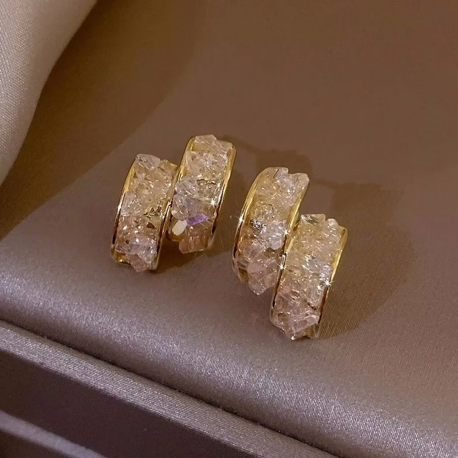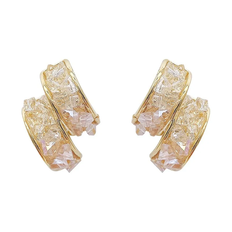 Sterling Silver Needle Glass Crystal Handmade C- Shaped Semi-curved Temperamental Minority Earrings