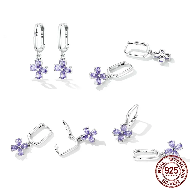 Sterling Silver Purple Zirconium Flower Purple Zircon