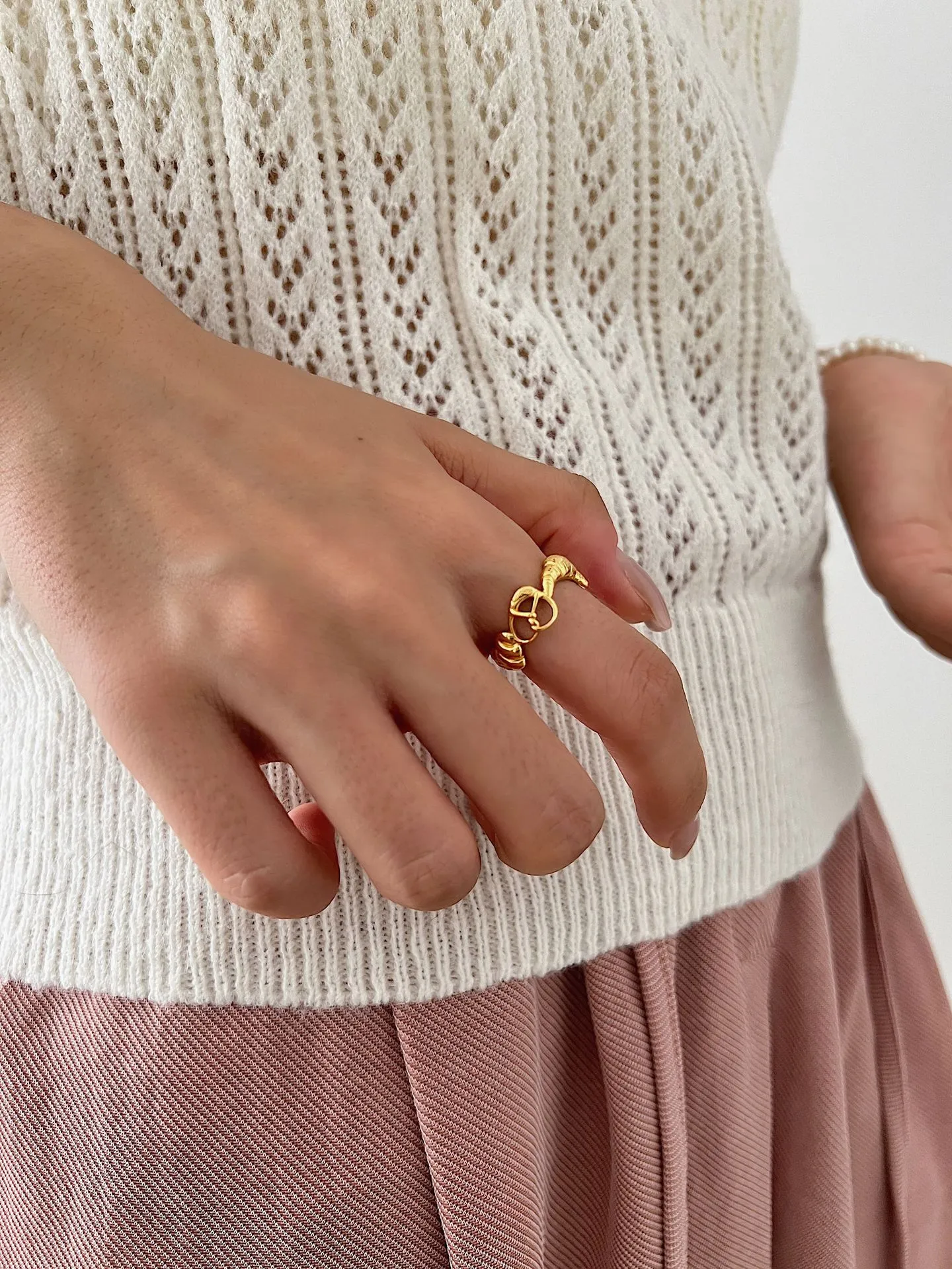 Inspired by the elegant and graceful curves of a croissant, this ring features a curved design that gently wraps around the finger, creating a unique, stylish silhouette. The shape and texture of the ring symbolize luxury and indulgence, making it the perfect accessory for those who enjoy distinctive fashion.