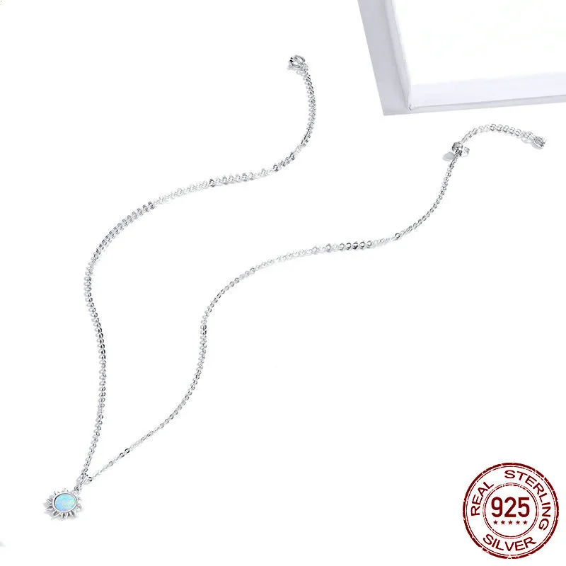 Sterling Silver S925 Ladies Necklace Sun Platinum Plated