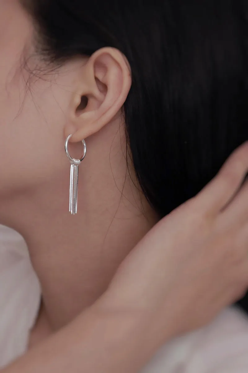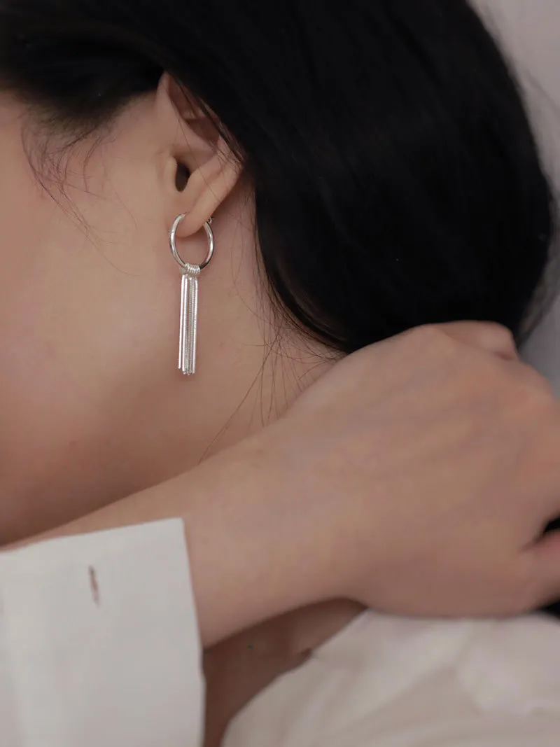 Sterling Silver Tassel Ear Clip Earrings Minimalist High Sense