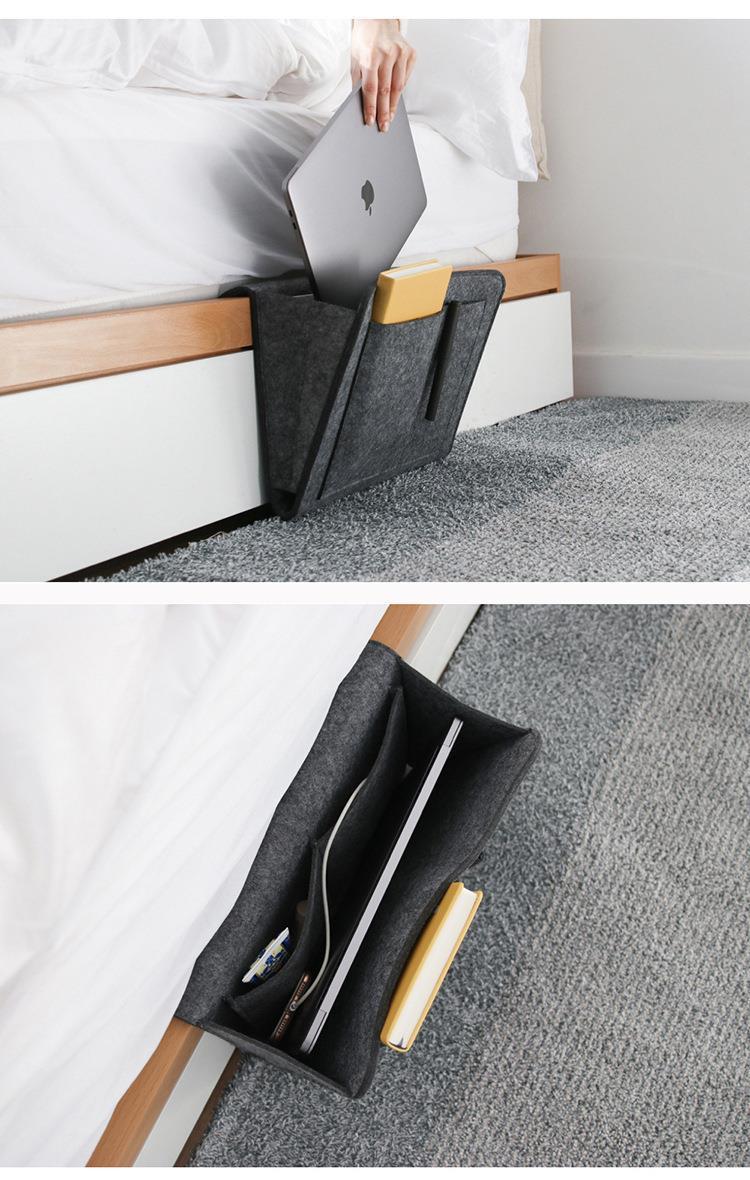 The high-quality 100% polyester felt caddy is ideal for convenient bedside storage. Store your phone, laptops, e-readers, tablets, books and