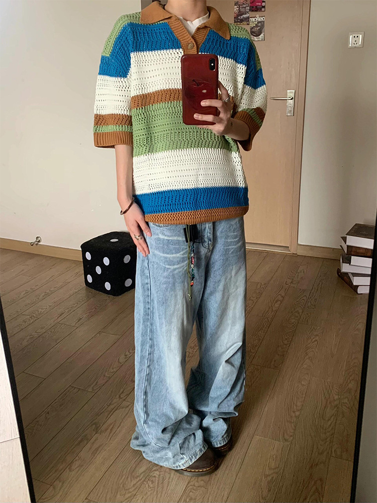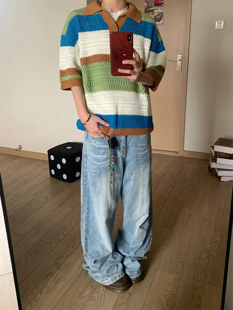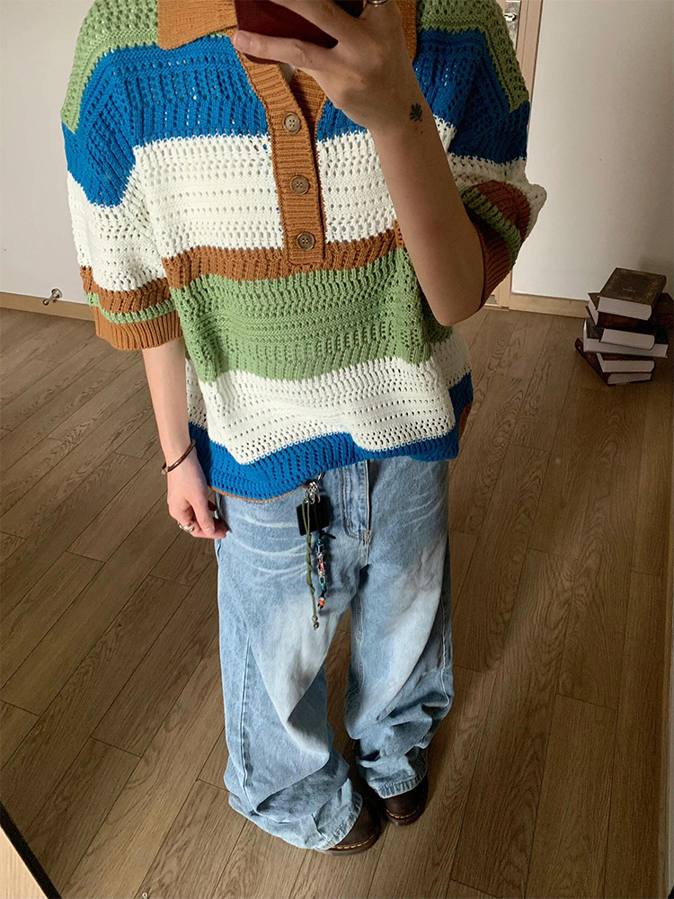 Striped Hollow Knitwear Short Sleeve