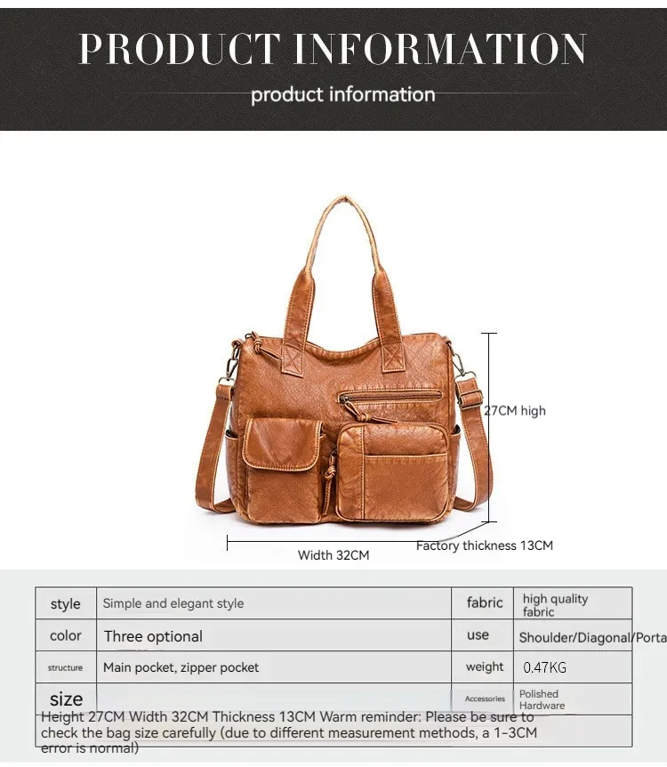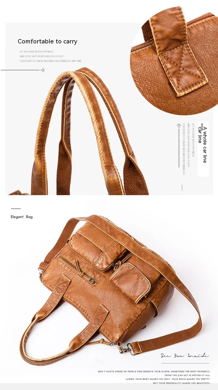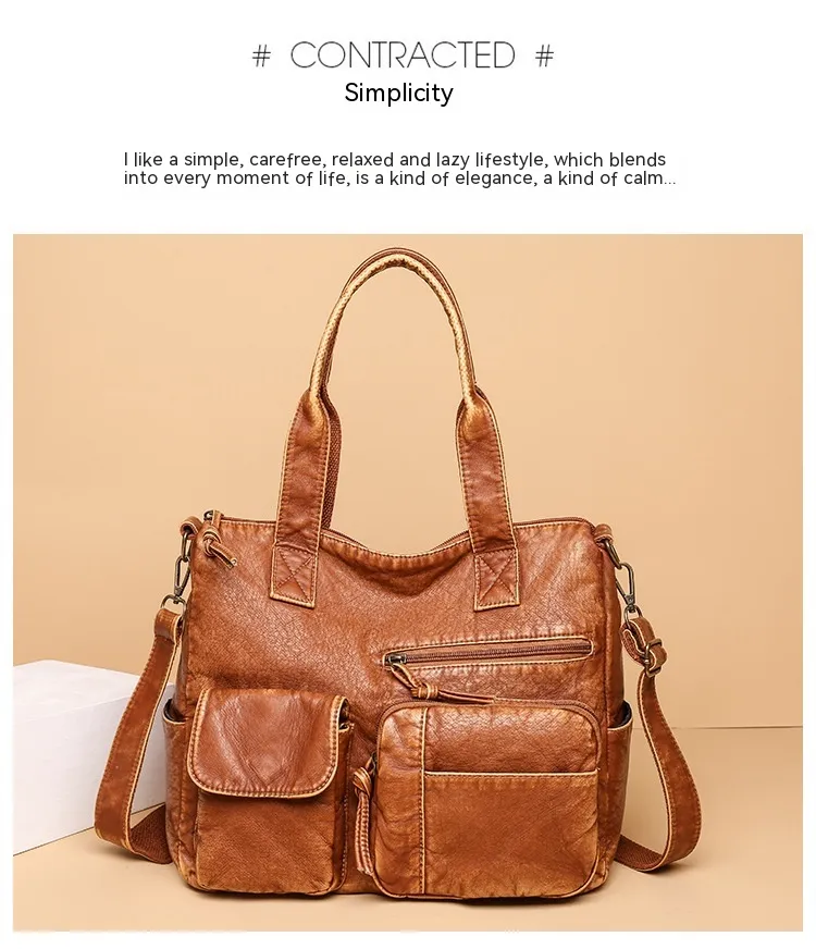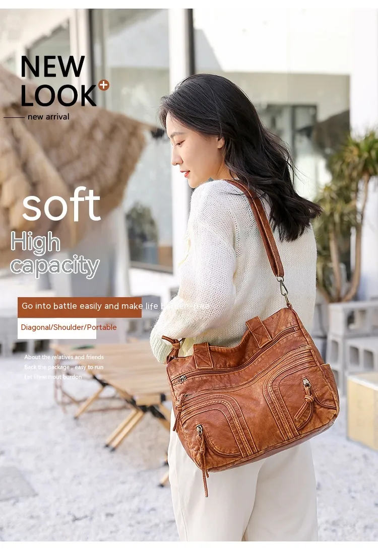Stylish Retro Minimalism Handbag Women's Casual And Lightweight Washed Leather All-match Shoulder Bag