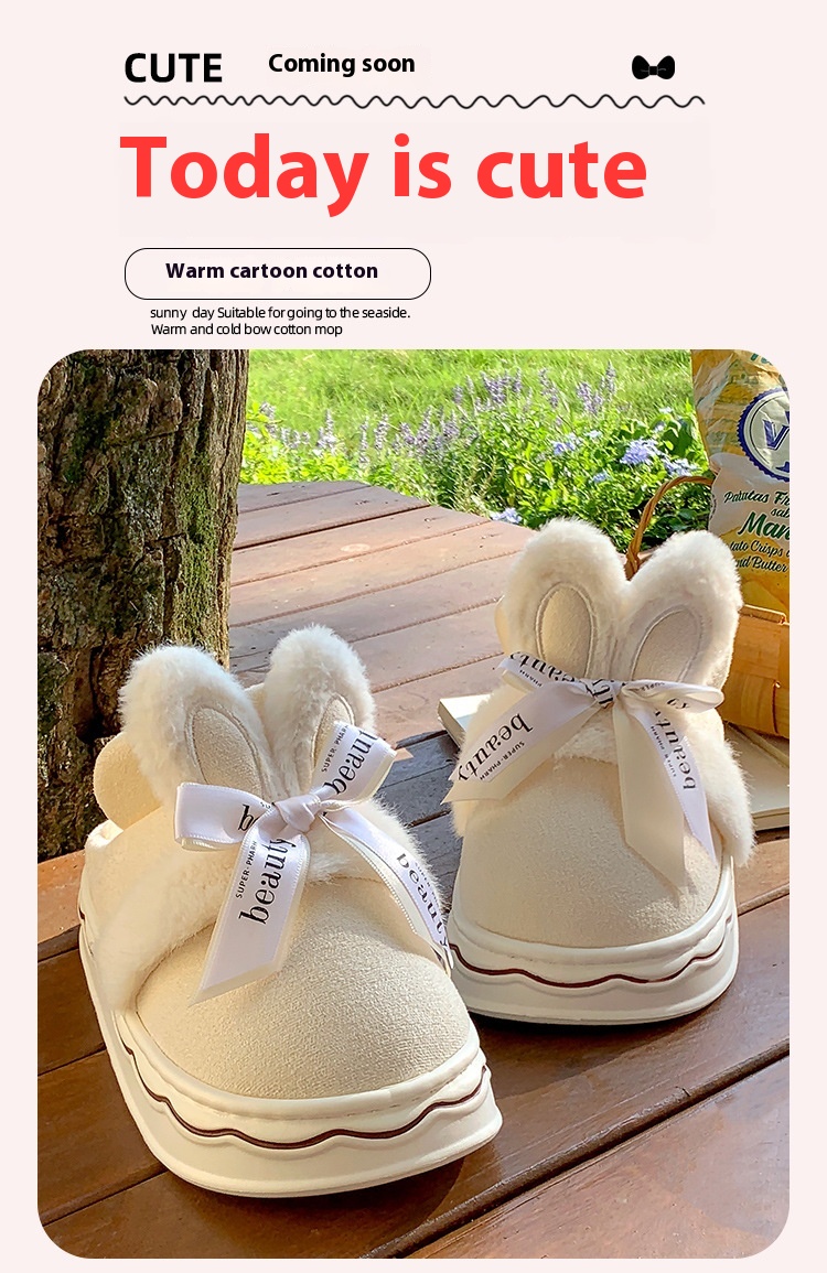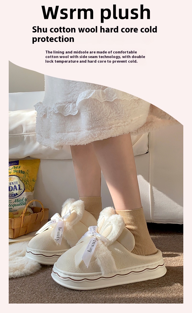 Suede Cotton Slippers Women's Home Bow Cotton Slippers