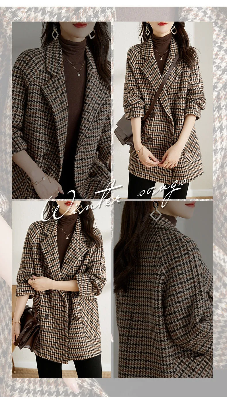 Why Choose the Suit Collar Houndstooth Woolen Coat?