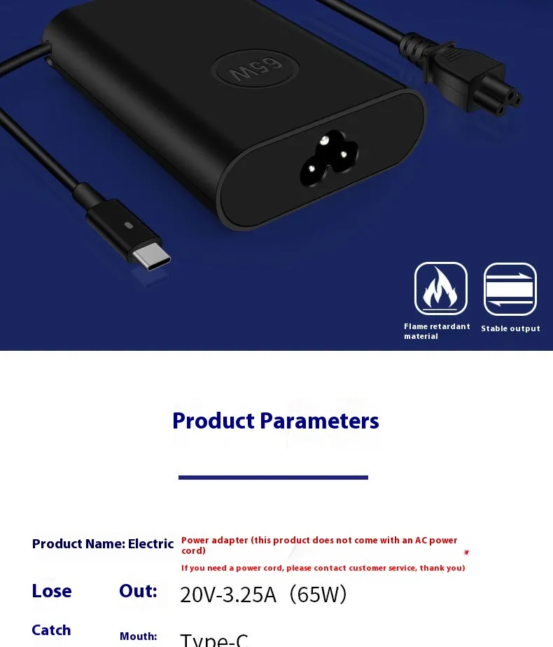 Suitable For Laptop Type-C 65W Power Adapter 20V-325A