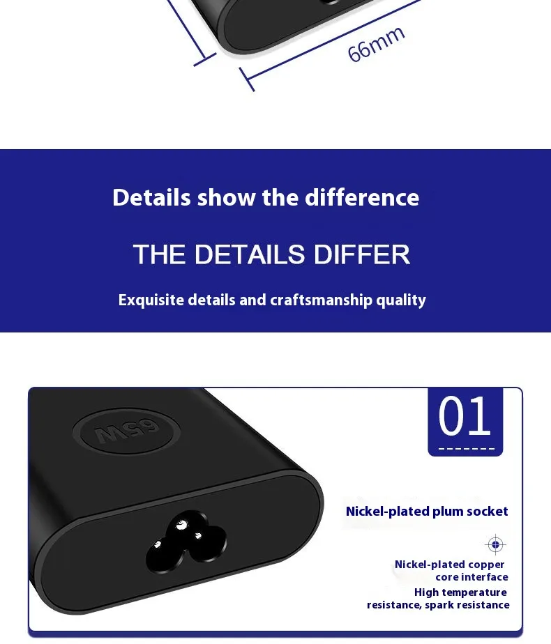 This power adapter is compatible with laptops supporting Type-C charging, making it a versatile and convenient solution for students, professionals, and digital nomads. Its compact and portable design allows for easy carrying in a backpack or laptop bag.