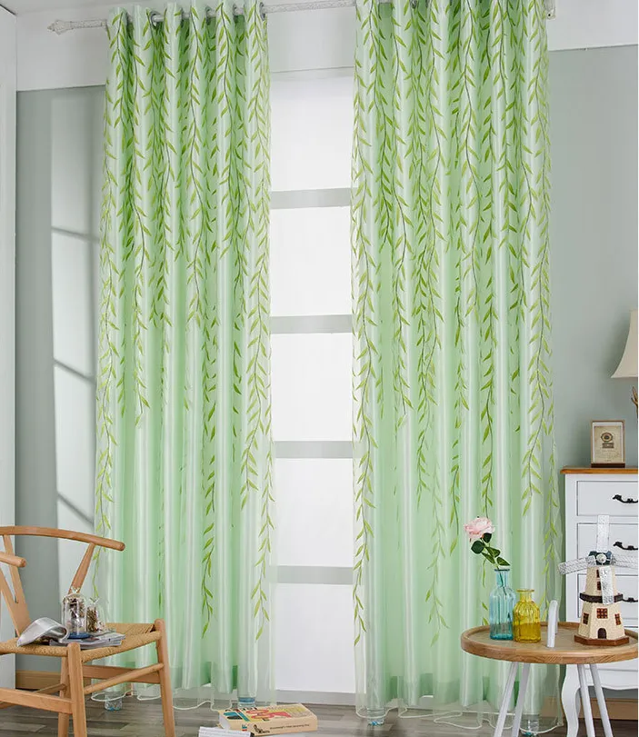 Beautiful Printed curtains with plant decorations.