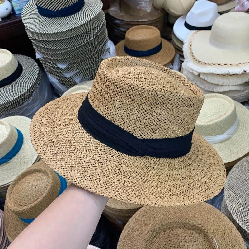 Summer Flat Straw Hat: Chic Raffia Beach Vacation Sun Hat for Women