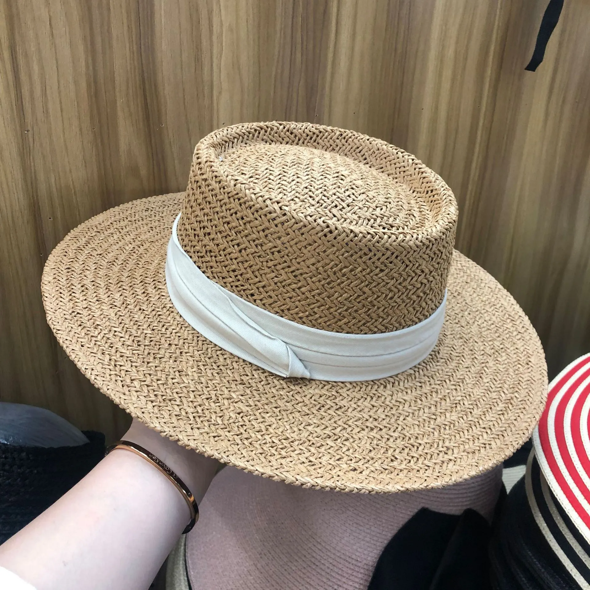 Minimalist Flat-Top Straw Hat Design