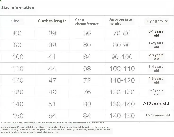 Suitable height: 80,90,100,110,120,130,140,150