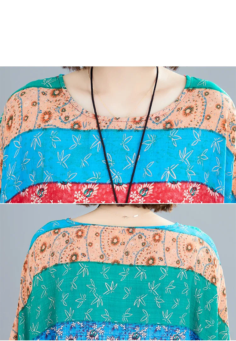 Summer Print Long Skirt Loose A-line Skirt Fat Woman Dress