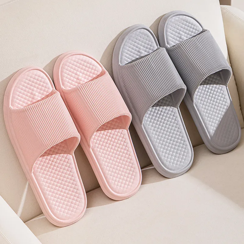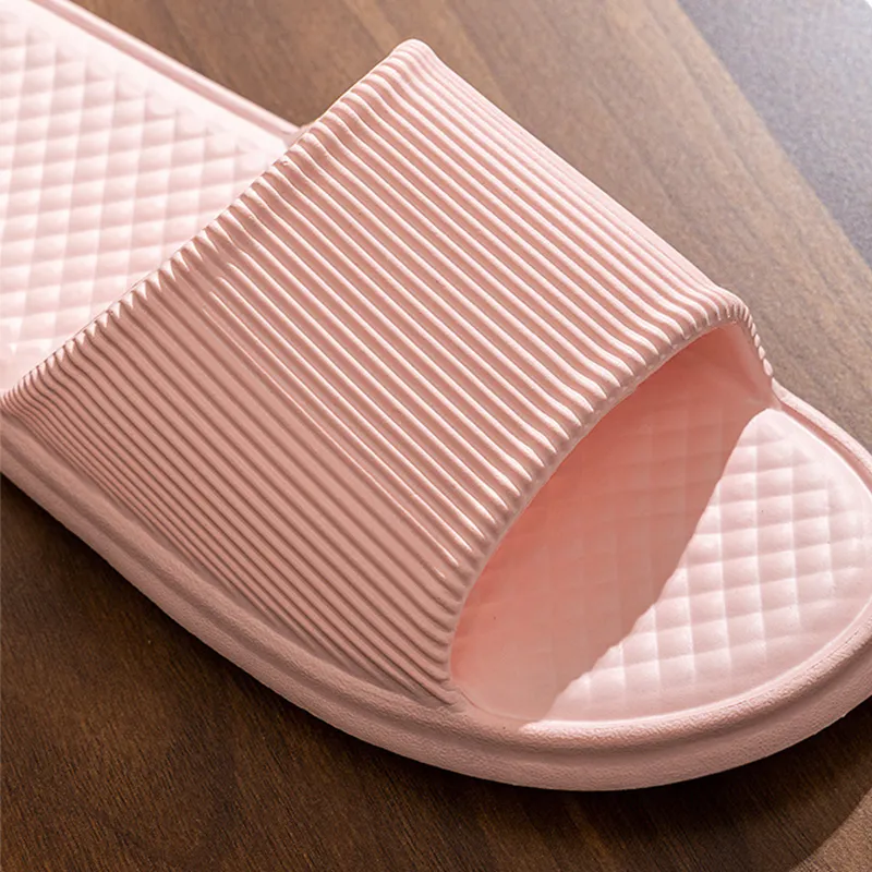 Summer Slipper Indoor House Shoes For Men Women Couples Solid Color Rhombus Striped Non-slip Bathroom Slippers