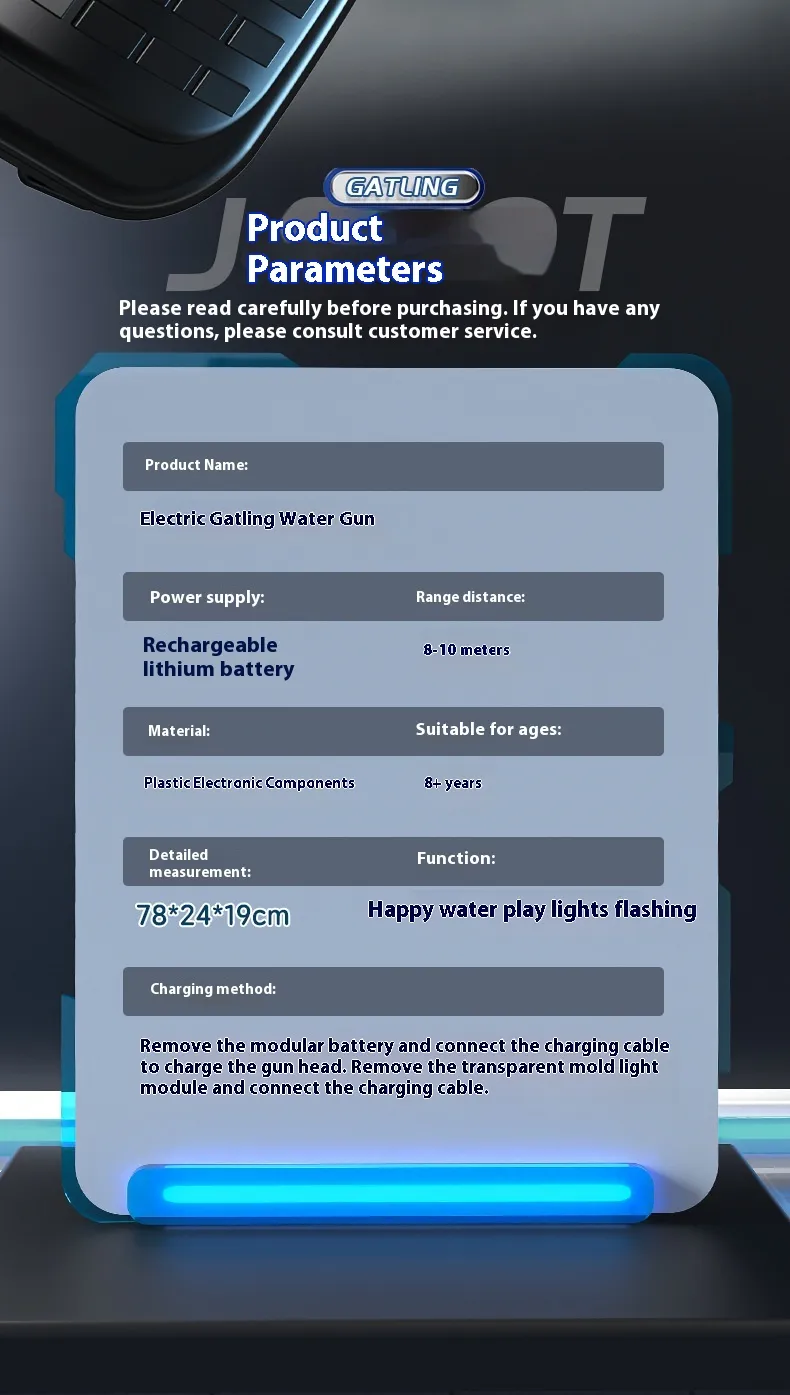 Parents will appreciate the safe and durable design of the Electric Gatling Water Gun. Made from high-quality, non-toxic materials, this water blaster is lightweight and easy to handle, making it safe for kids to carry and operate. The sturdy construction ensures it can withstand active play, whether it’s used in the backyard, at the pool, or on the beach.