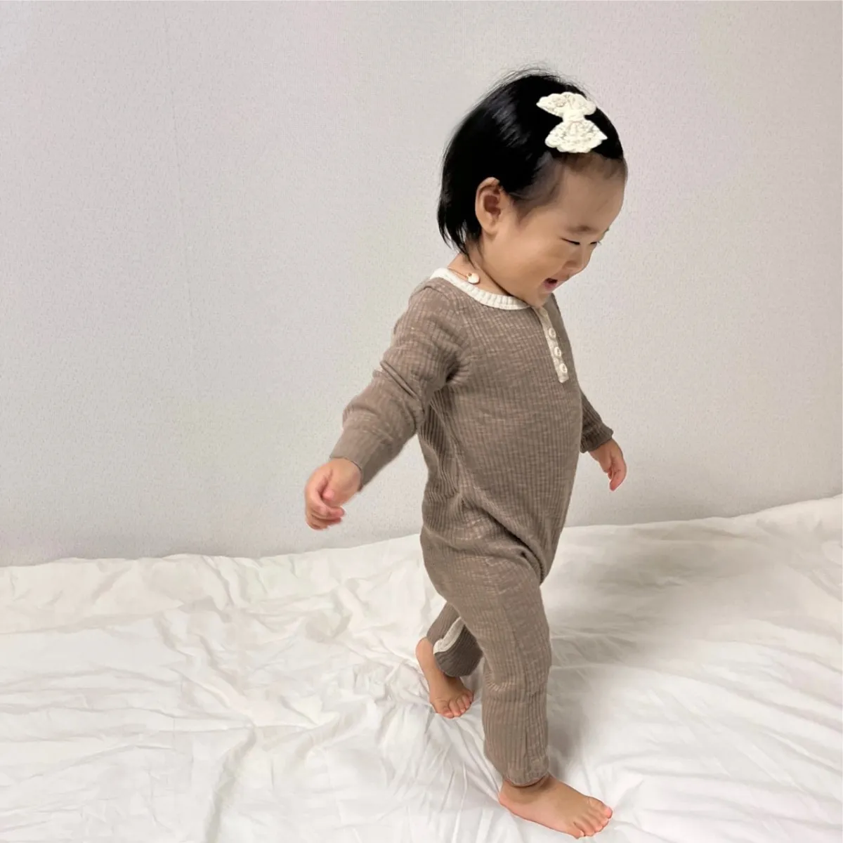 Long sleeves and full-length legs protect babies during crawling, climbing, and other activities.
