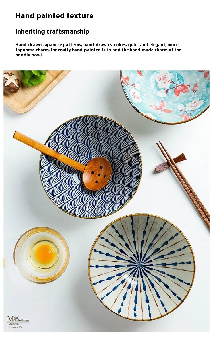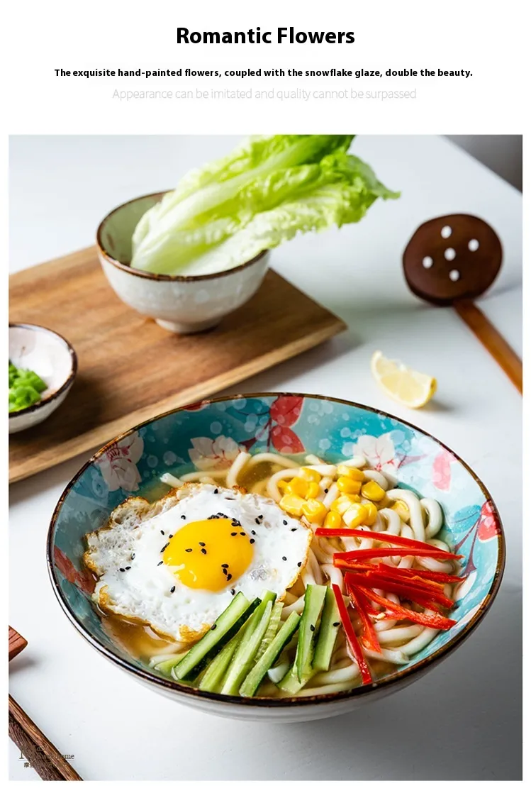 Color: Snowflake glaze Cherry Blossom 8-inch noodle bowl, waving cherry blossom 8-inch noodle bowl, snowflake glaze Magnolia 8-inch noodle