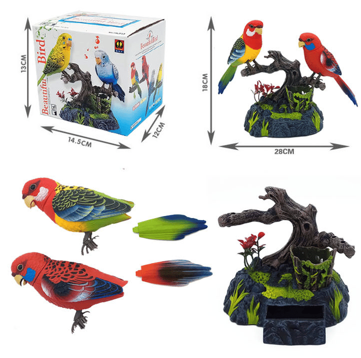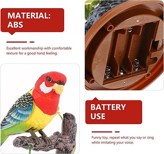 The parrots can talk! Turn on the switch and the parrots will repeat what you say. It is an amazing electronic bird pets!