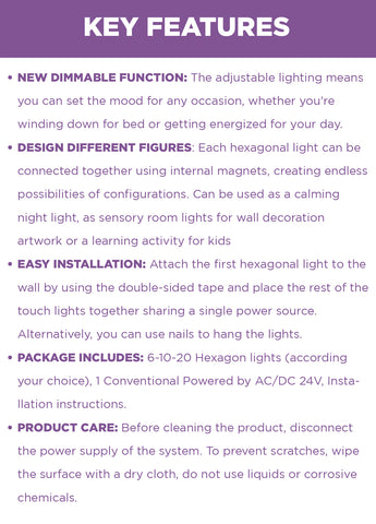 With a few simple taps, these lights have the ability to transform any space into a stimulating, enjoyable and sensory room for kids, providing visual stimuli that can capture kids' attention and interest. Simply swipe across the areas you want to turn on and swipe again to turn off.Â
