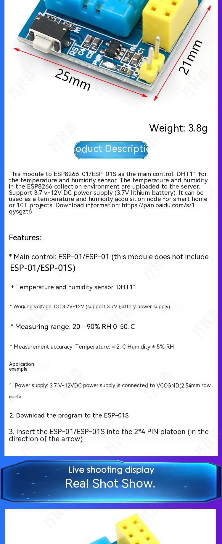 The module is designed to monitor a wide range of temperatures and humidity levels, making it suitable for various environments, including homes, offices, greenhouses, warehouses, and industrial applications. Whether you're tracking room temperature or the conditions in a climate-sensitive area, this module provides the versatility you need.