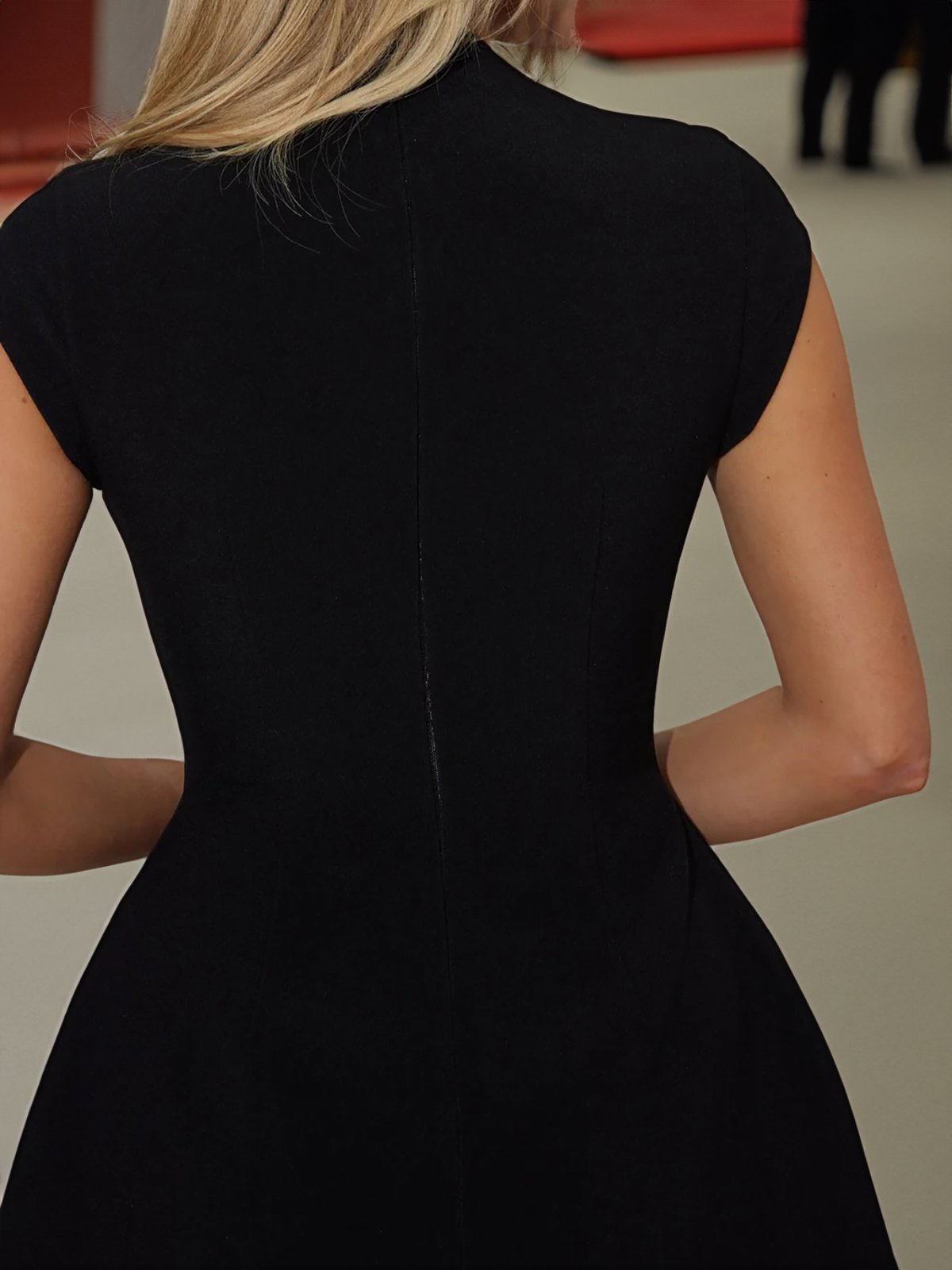 The exquisite high neck makes this dress more elegant, and there are two front flap pockets, which are fashionable and convenient.