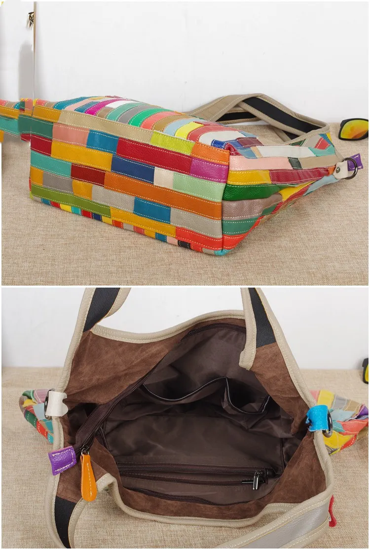 Crafted from high-quality materials, this bag offers not only durability but also a touch of sophistication. The first layer leather used in the construction ensures that the bag stands up to everyday wear and tear, while maintaining a smooth, soft feel. The eye-catching color stripes add a playful and vibrant touch to the overall design, making this messenger bag an excellent accessory for those who want something distinctive yet practical.