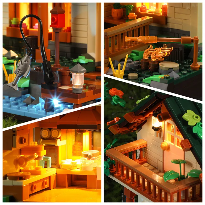 The Lakeside Hut Is Equipped With LED Lighting Puzzle Assembly Building Block Lighting Toys