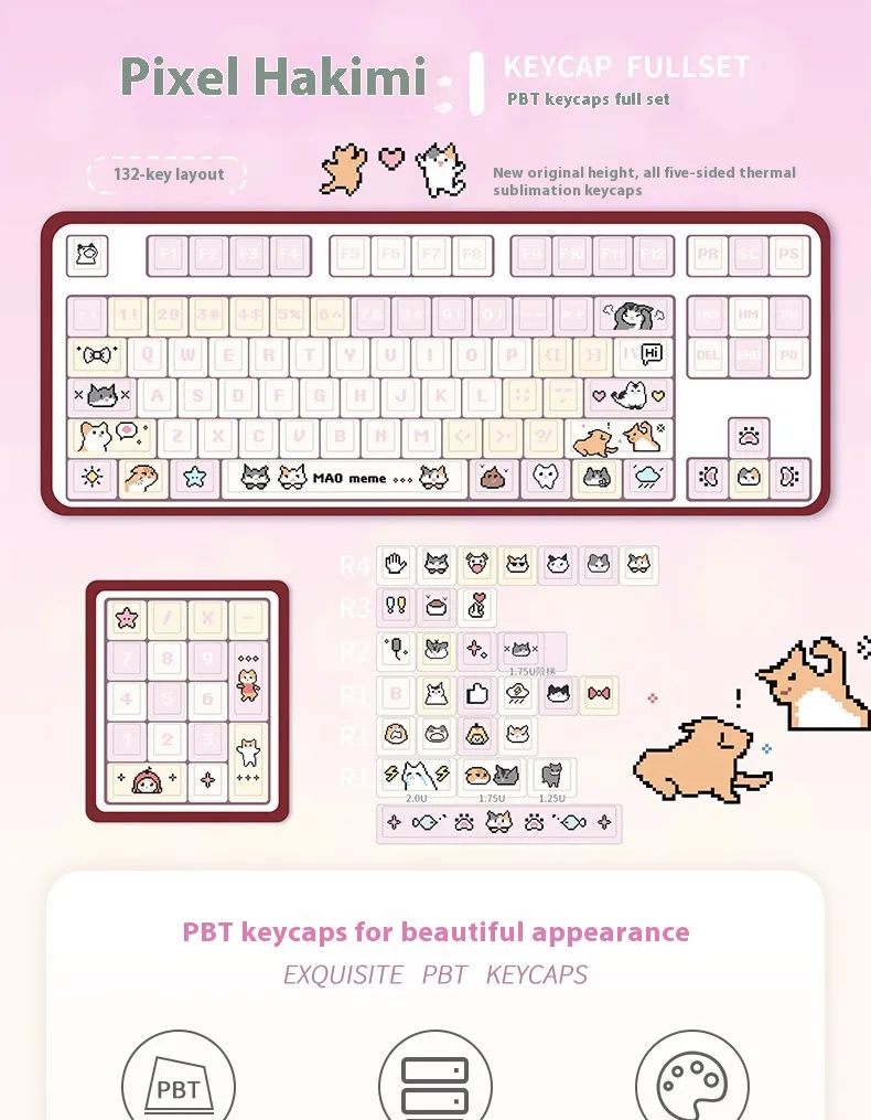 Perfect for custom keyboard builds, this keycap brings a pixel-style Hakimi theme, adding a unique and personalized touch to your setup. Whether for gaming, work, or school, it combines style and functionality in one compact accessory.