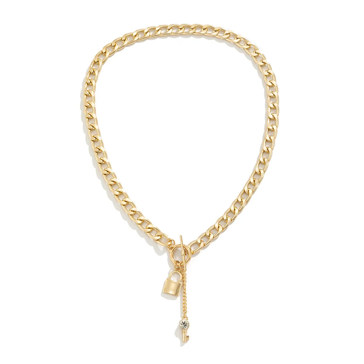 This necklace features a thick chain that exudes confidence and style. The shiny lock and key pendants add a touch of charm and elegance, making this piece perfect for women who love to stay ahead of the fashion curve. It's both bold and versatile, offering a trendy way to accessorize any outfit.