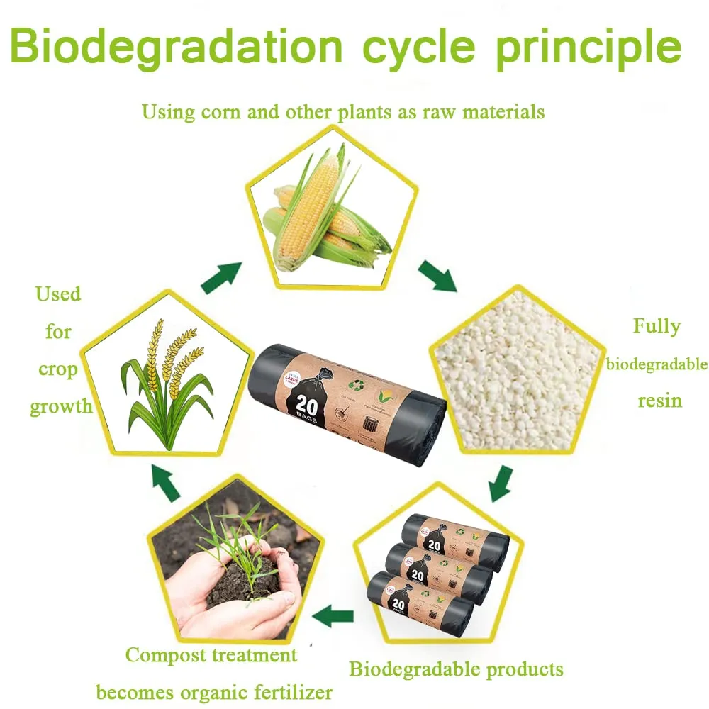 Degradable material: Compostable bag is made of plant starch, free of polyethylene, and pure natural. These compost garbage bags are safe