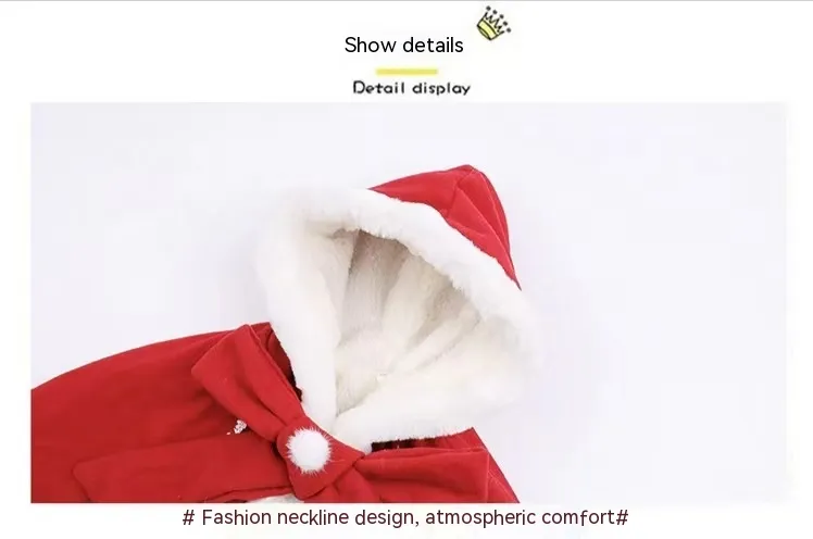 Product Description for Thickened Kids' Overcoat Fleece-lined Shawl with Fur Collar – Christmas Cape