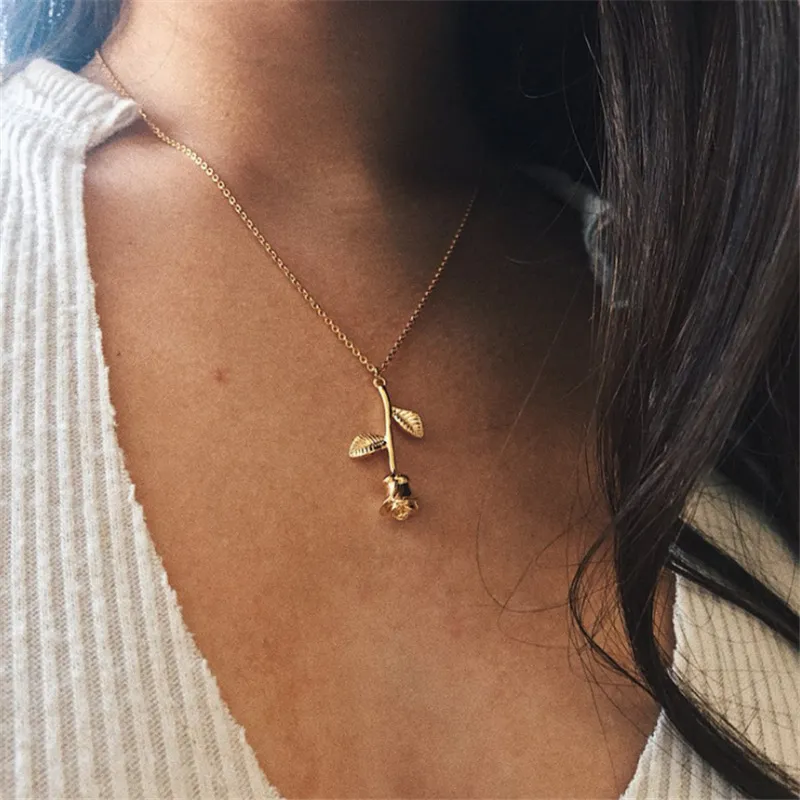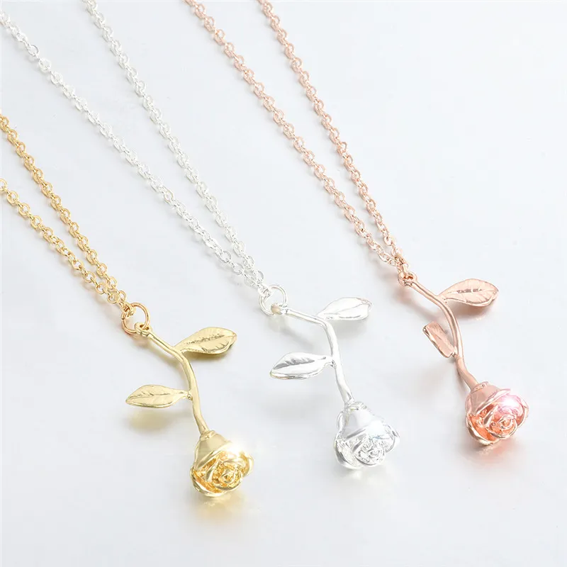 Three-color Rose Pendant Necklace