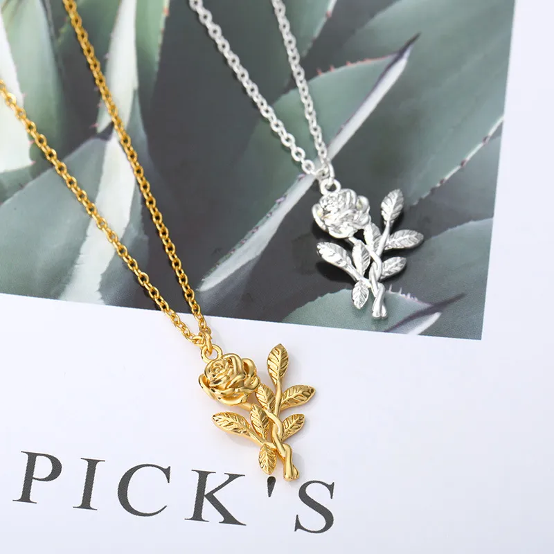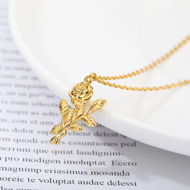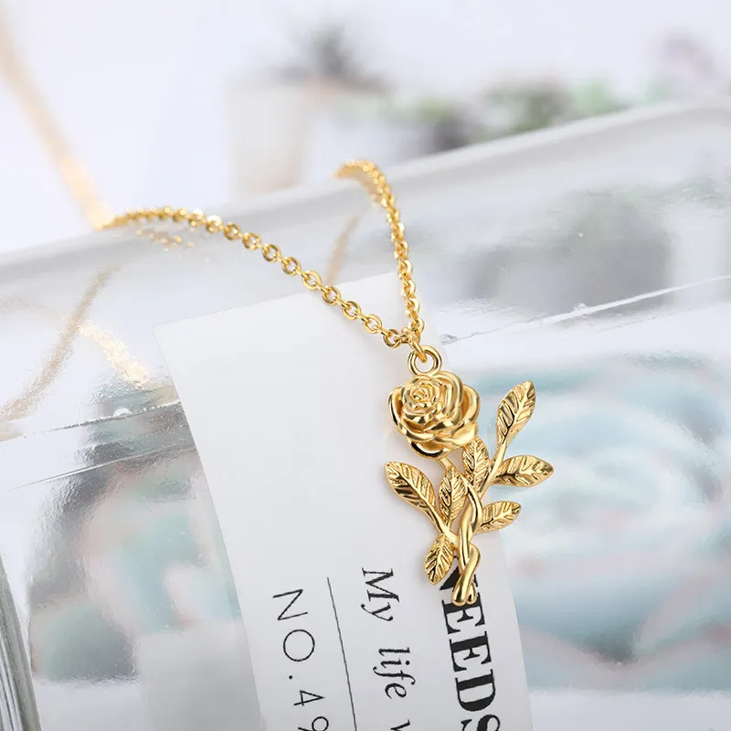Three-dimensional Rose Necklace Stainless Steel Necklace
