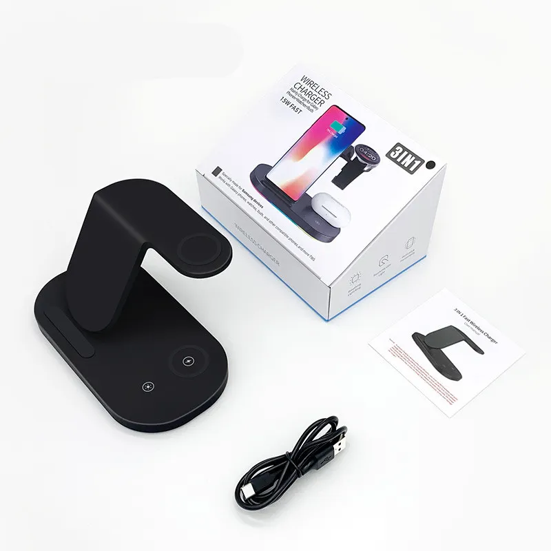 The Three-in-One Mobile Phone Wireless Charger features a stylish, minimalist design that complements any workspace or home decor. With its compact, space-saving form, it fits perfectly on your desk, nightstand, or any flat surface, eliminating the need for multiple charging cables and outlets.
