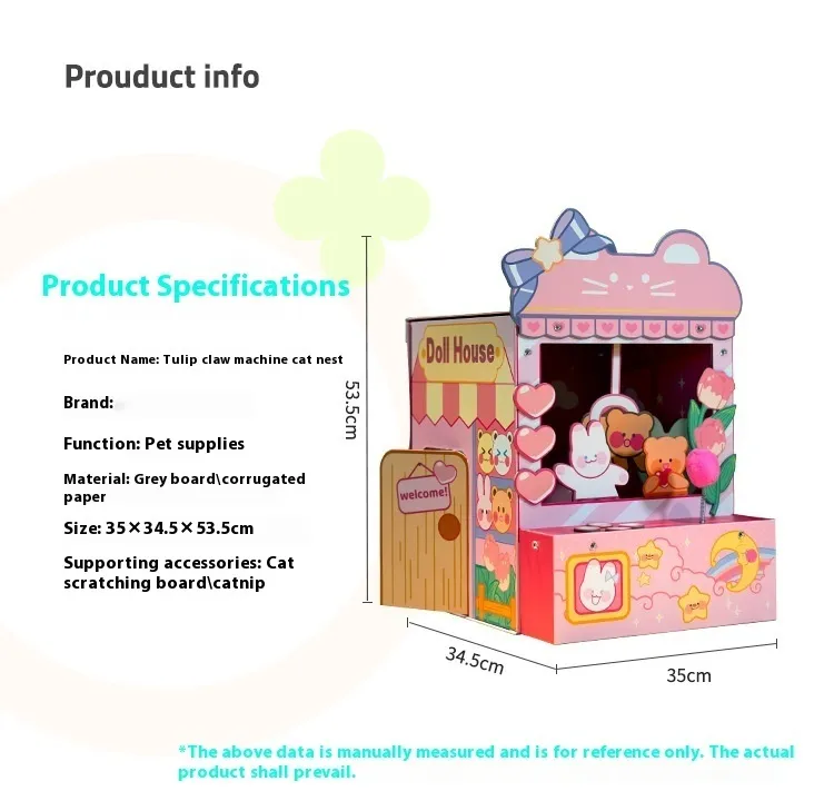 Practical and Fun: The Three-in-One Tulip Clip Cat Nest Crane Machine provides a combination of comfort