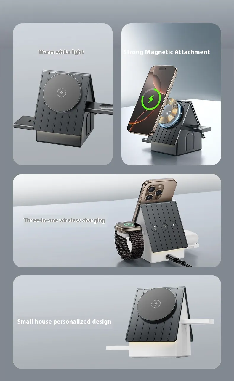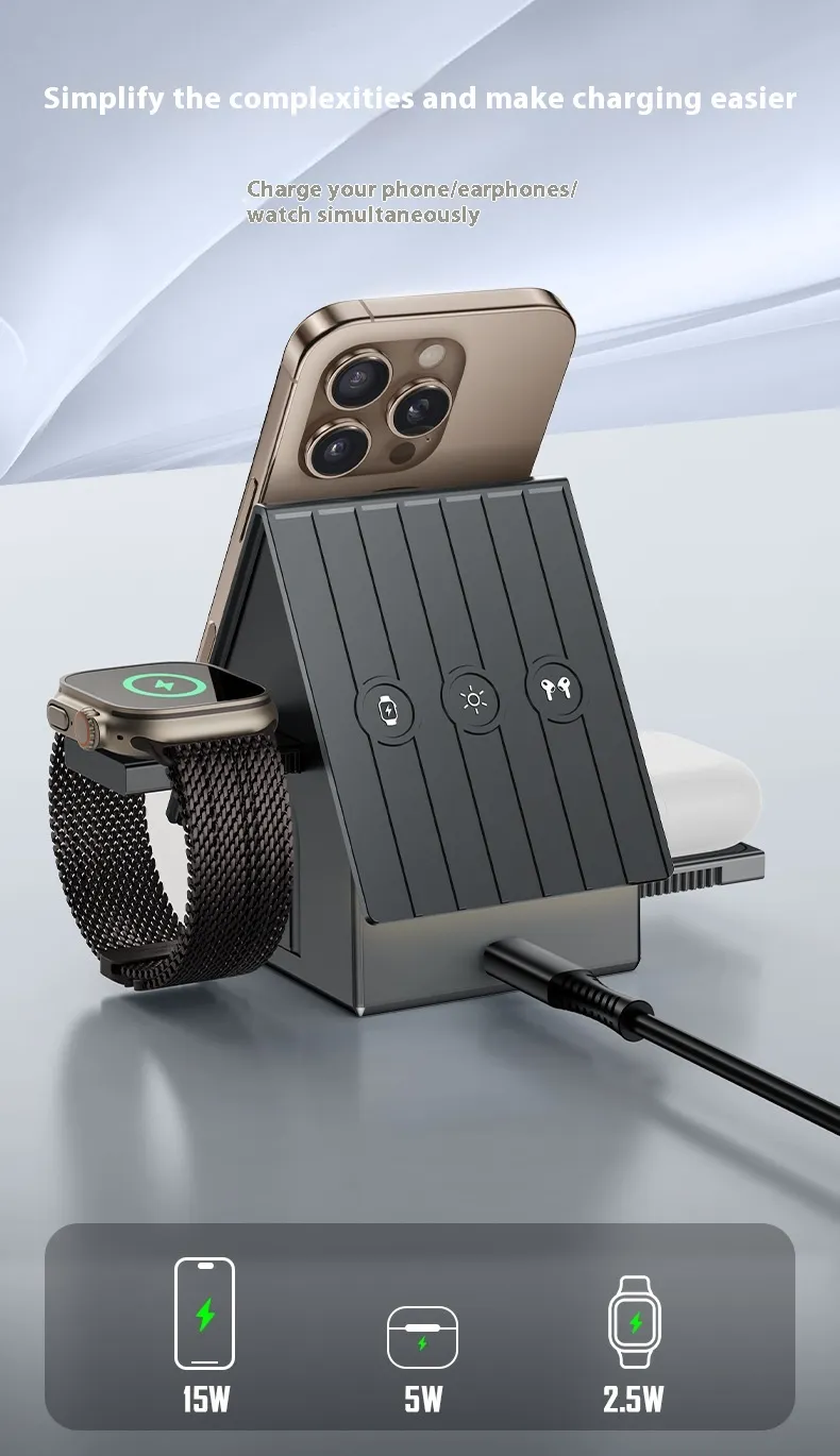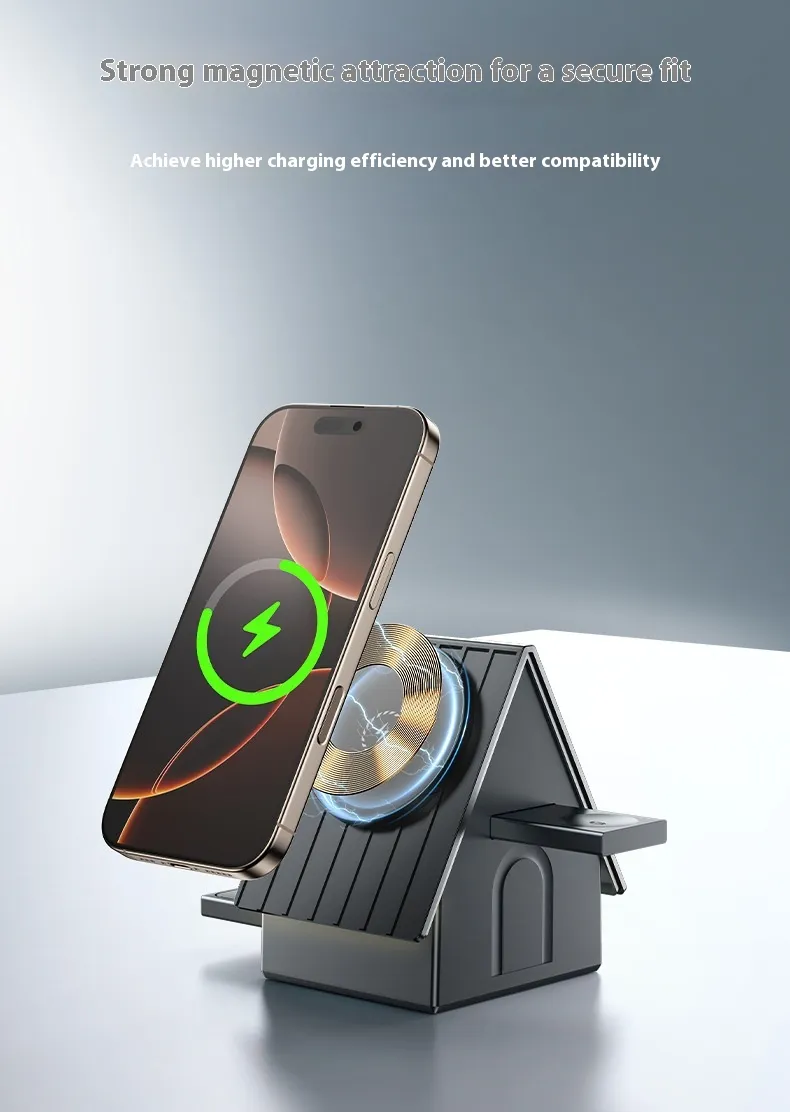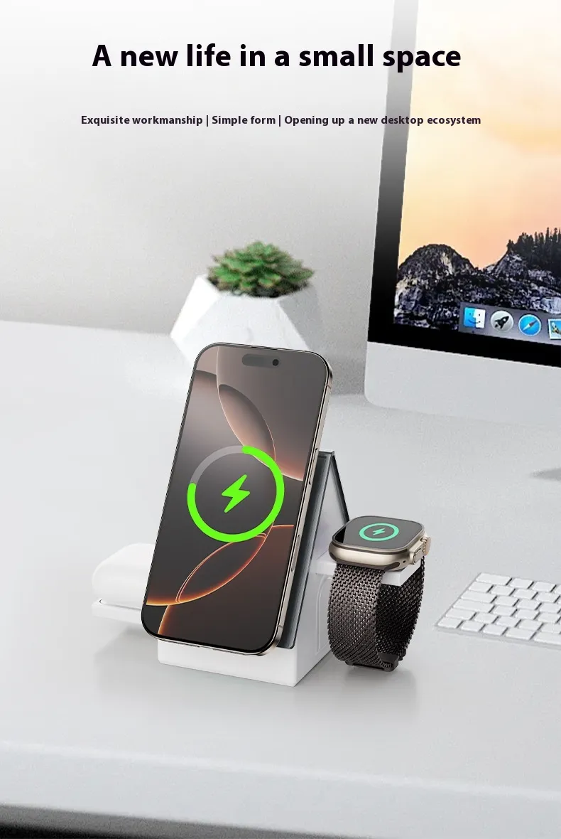 Three-in-one Wireless Charger Desktop Base Magnetic Bracket Suitable For Mobile Phone Watch Headset Fast Charging