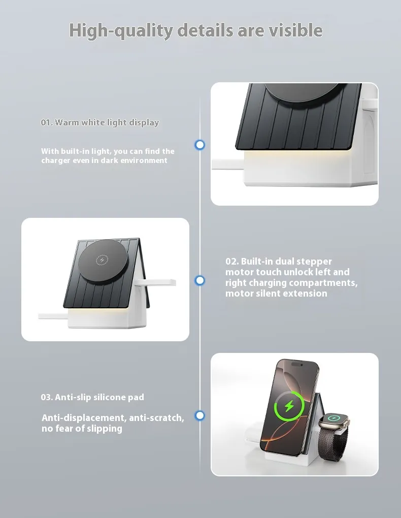 - 3-in-1 wireless charging for phone, watch, earbuds